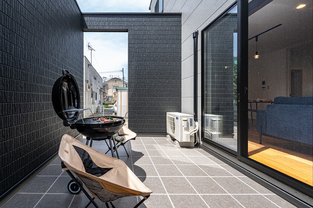 - テラス:1階部分に設けられた、屋根のないフラットな屋外スペース。