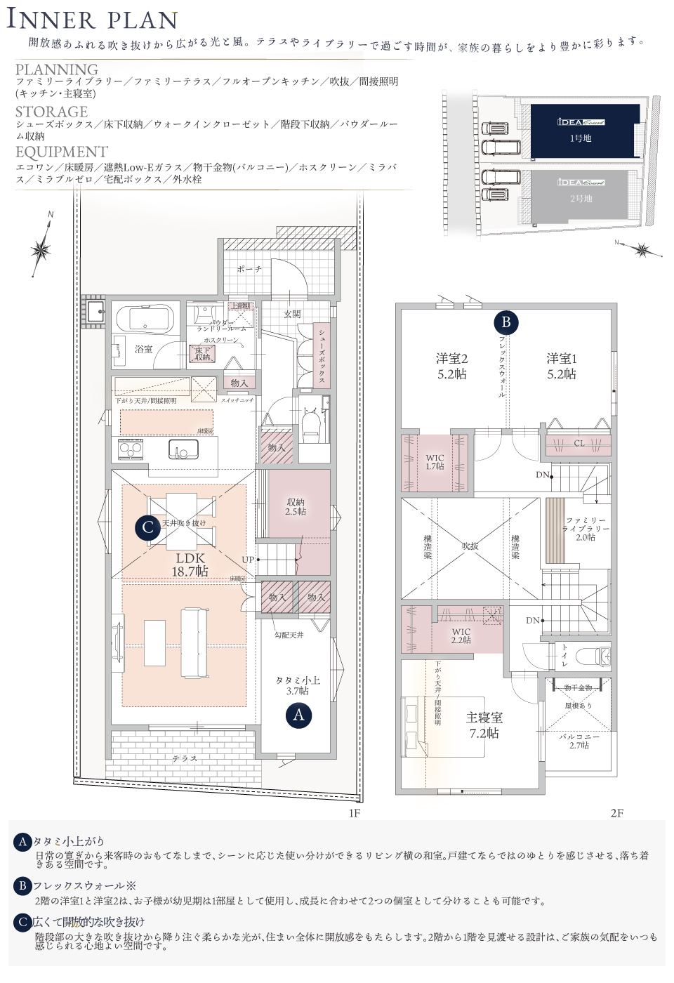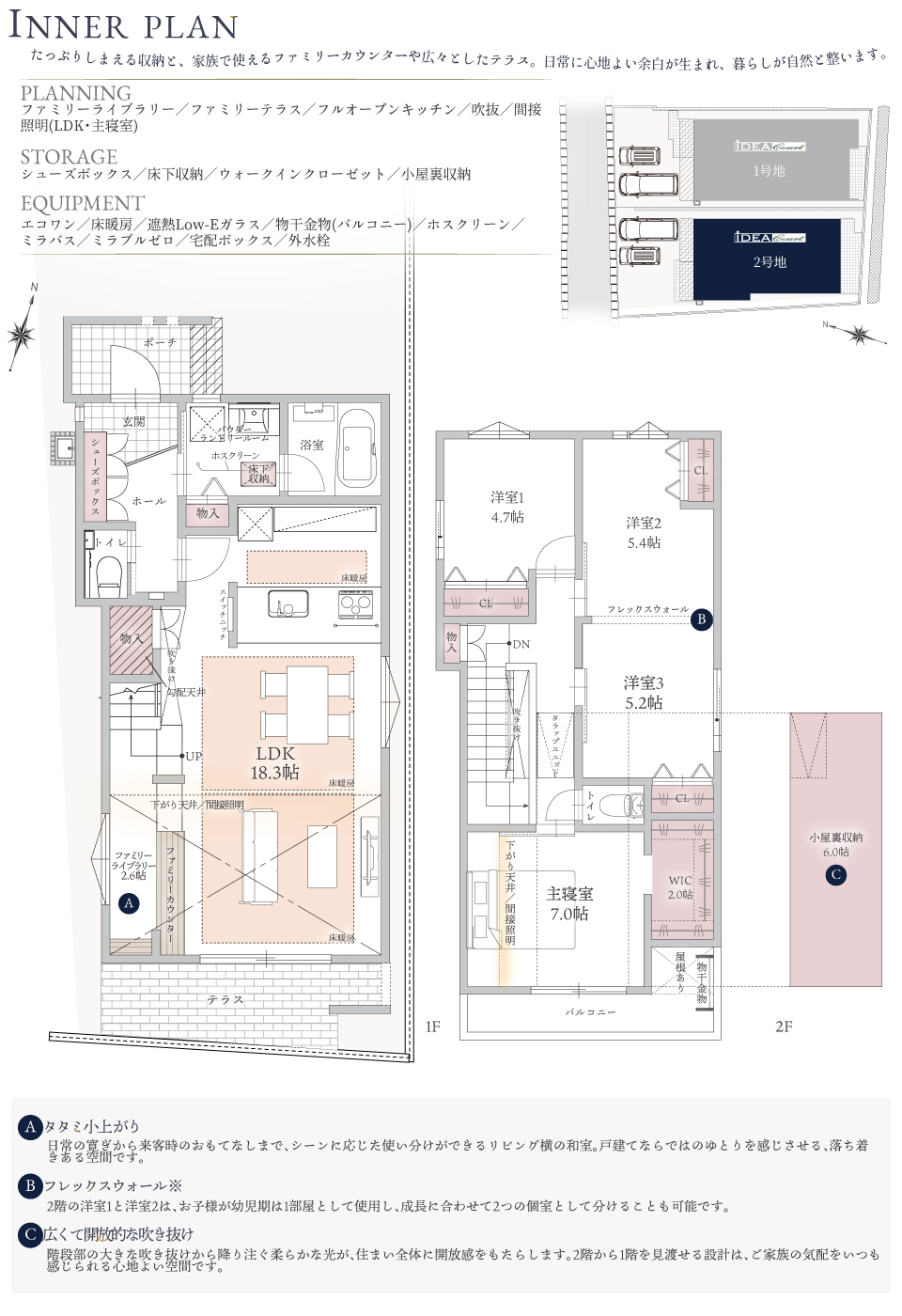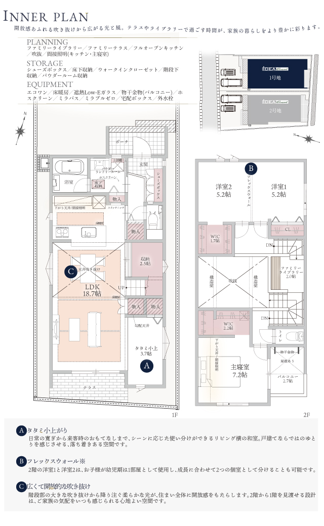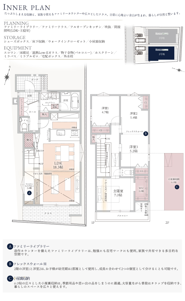 イデアコートでは、今、求められているライフスタイルに合わせて、一棟ずつ、オリジナルの間取りをプランニングしています。
