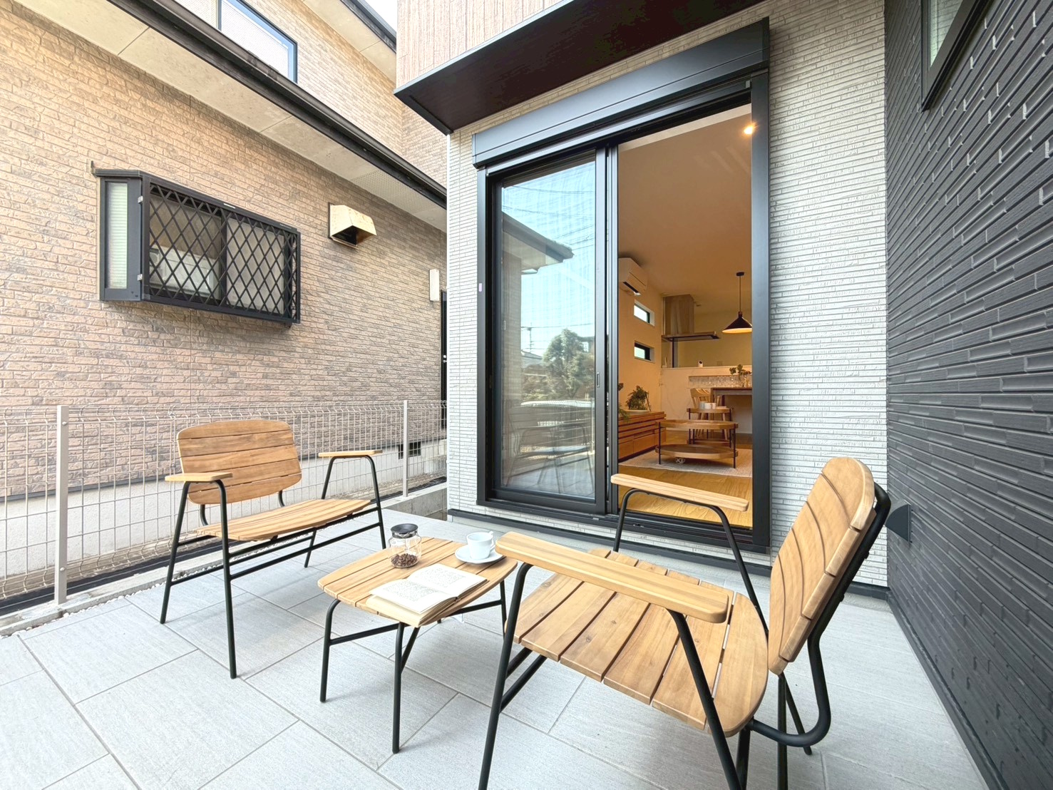 テラスにオシャレなコートラインと家具を設置しました🪑✨コートラインがあることで目線が気にならず、おうち時間を更に愉しめます🌿