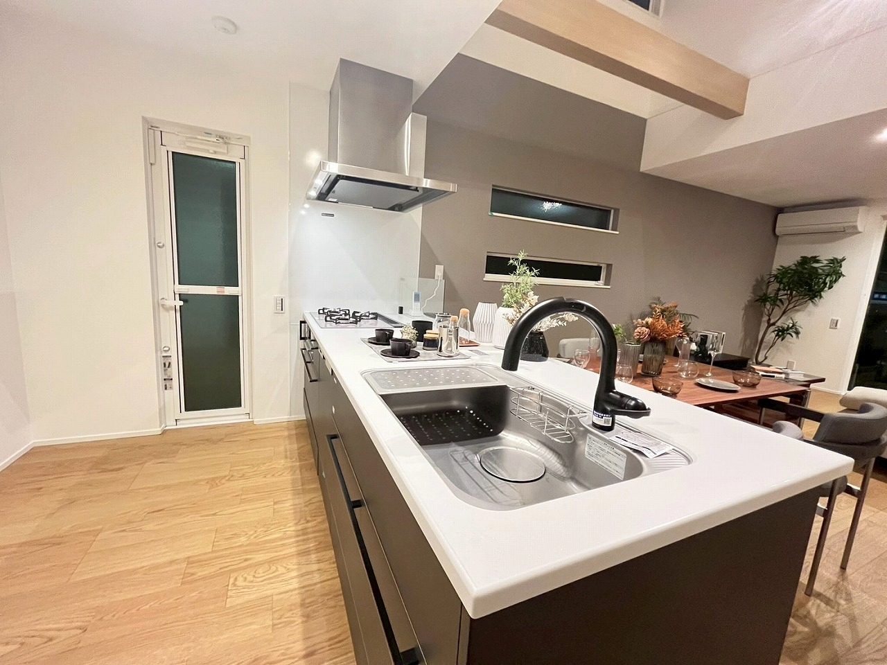 キッチンから、家族の様子を見渡せる対面式。遮るもののないオープン仕様で、自然と会話が弾む明るい空間に🕊️