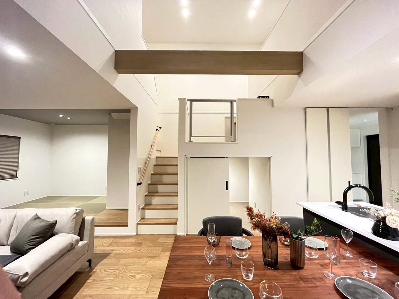 リビングサイドのタタミルームは、お子様のプレイルームや洗濯物を畳む家事スペースとしても重宝します✨