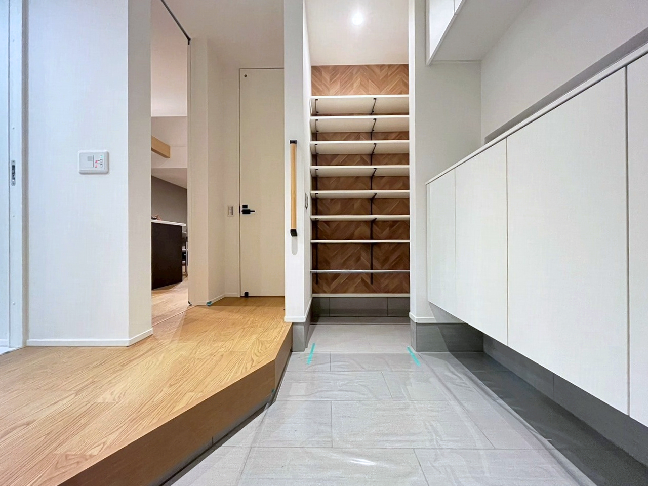玄関から直接洗面室につながる動線。帰宅後すぐに手洗いや着替えができ、リビングに汚れを持ち込みません🌿