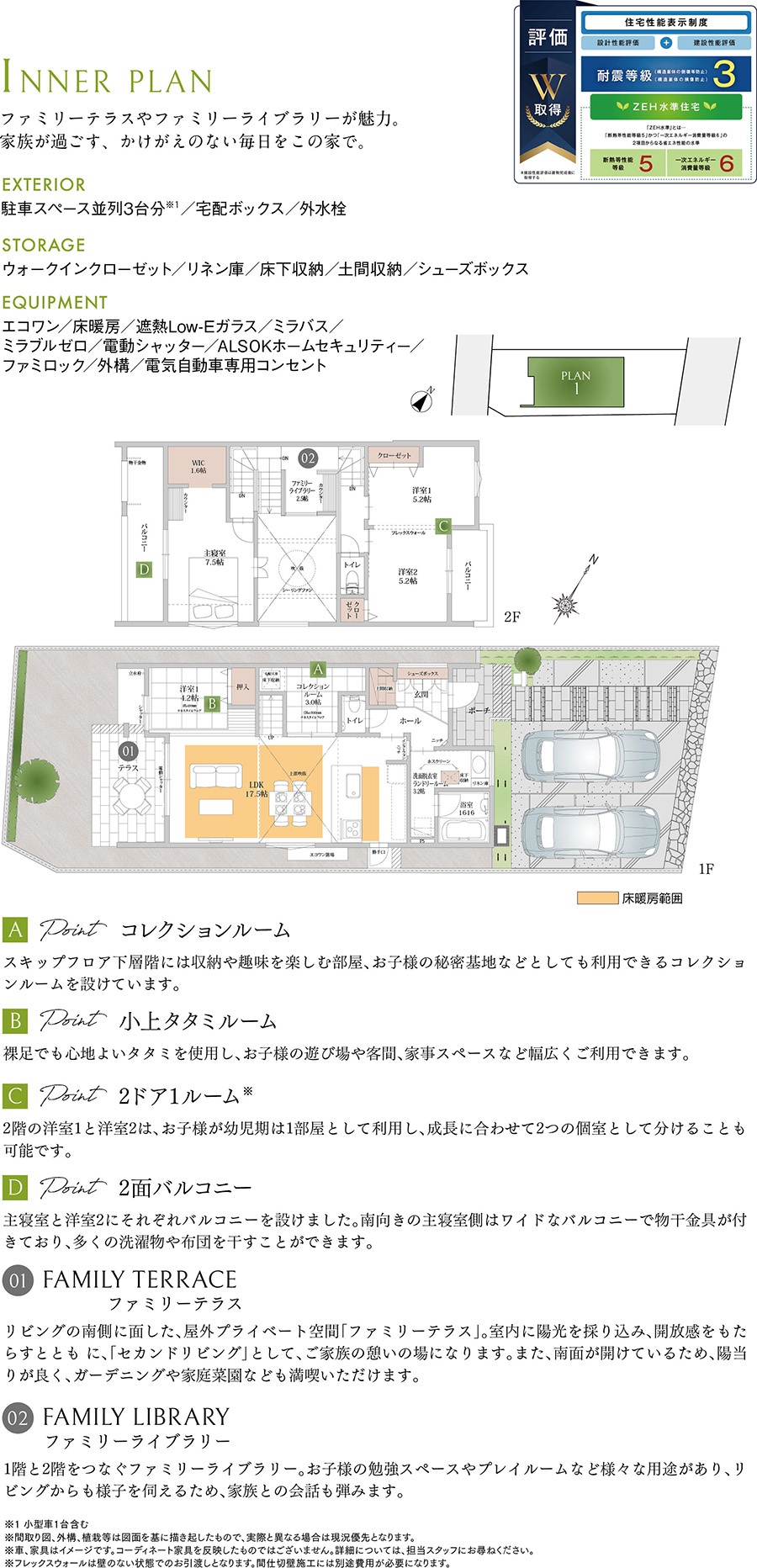 「ファミリーテラス」や「ファミリーライブラリー」など、