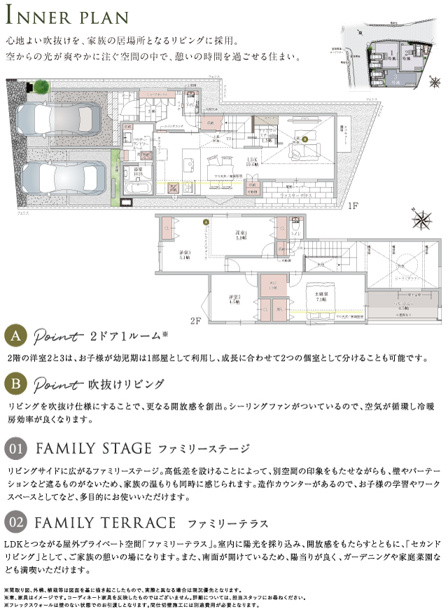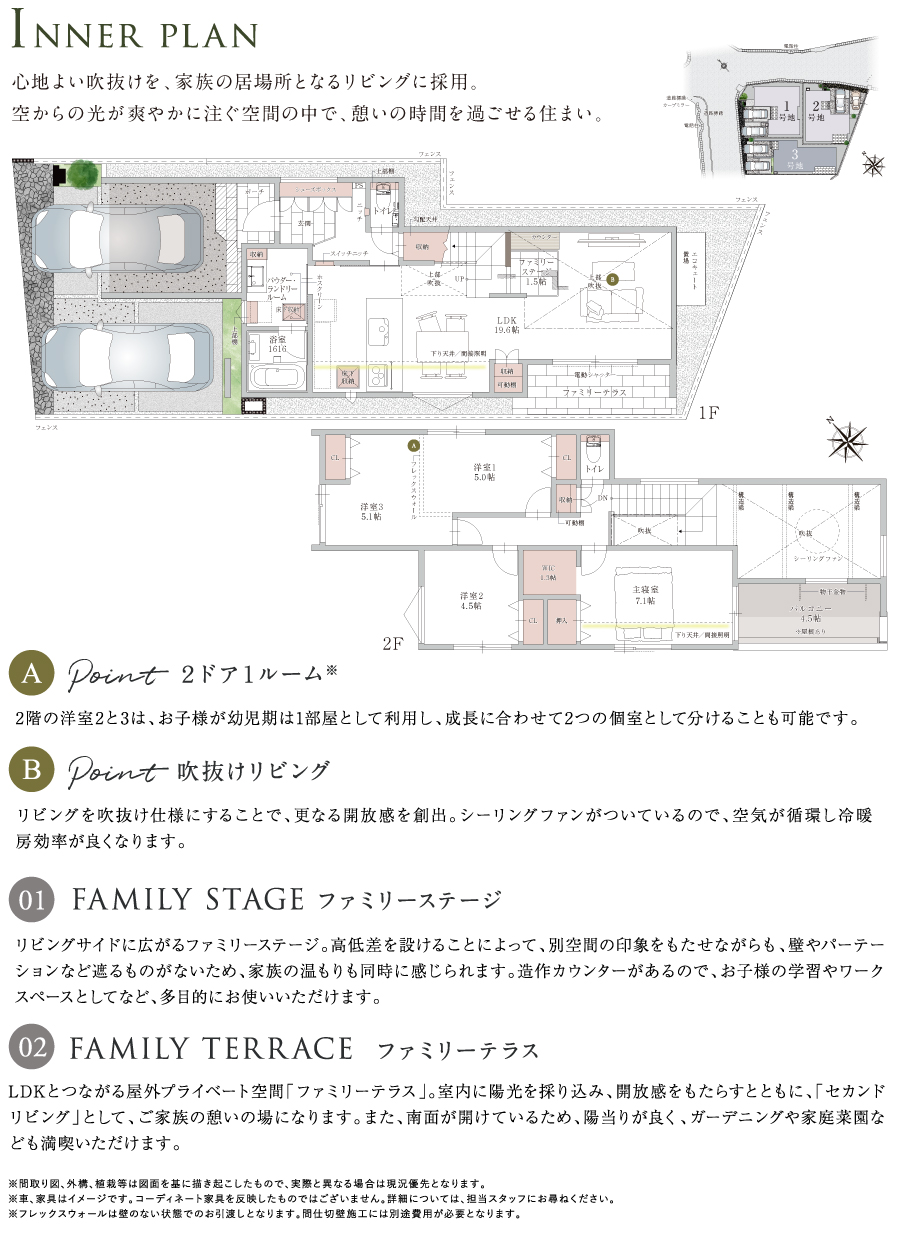 テラスやバルコニー・ファミリーライブラリーやファミリーステージ等