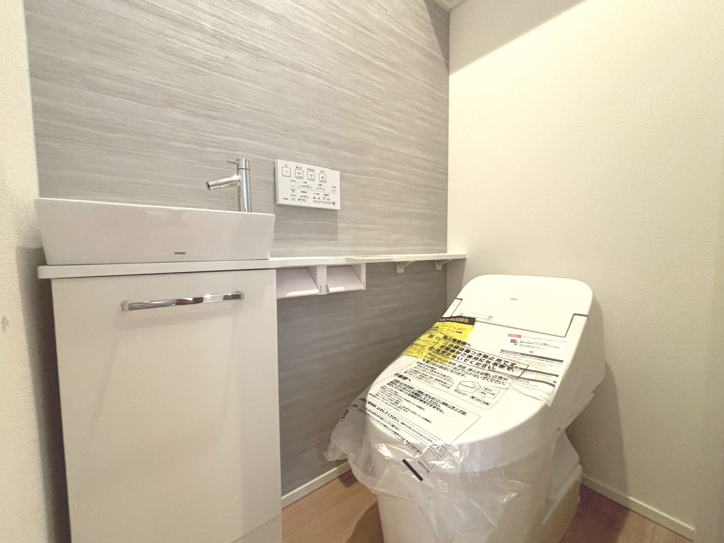 1階には、来客時にも使いやすい独立手洗い器付き。機能性と清掃性に優れた清潔感あるトイレ空間🫧