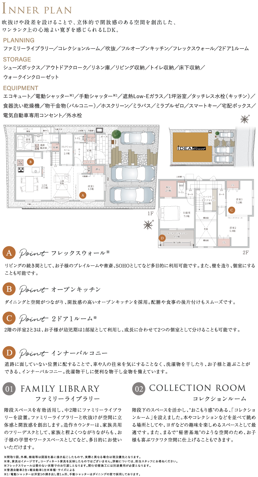 イデアコートでは、今、求められているライフスタイルに合わせて、一棟ずつ、オリジナルの間取りをプランニングしています。