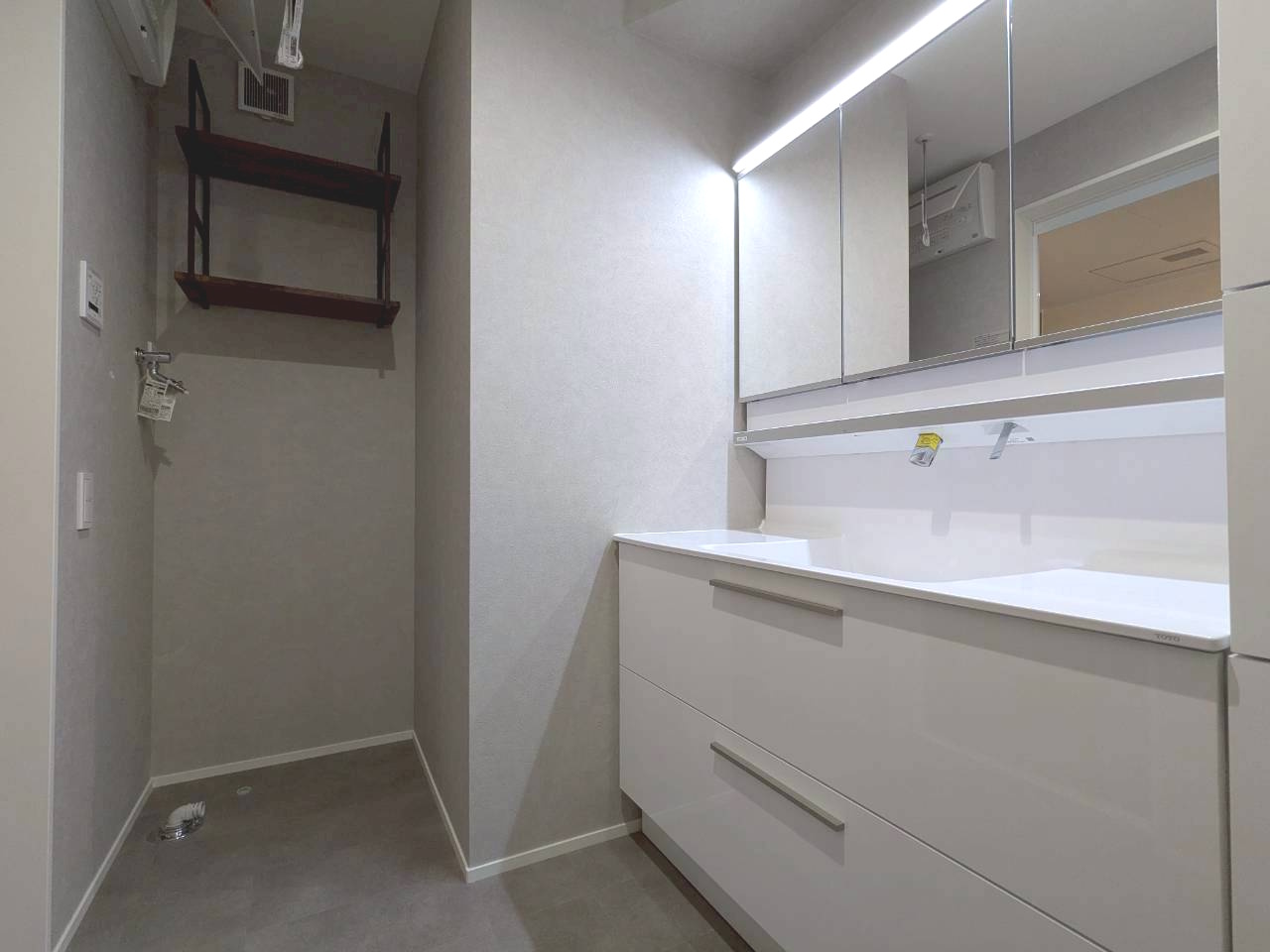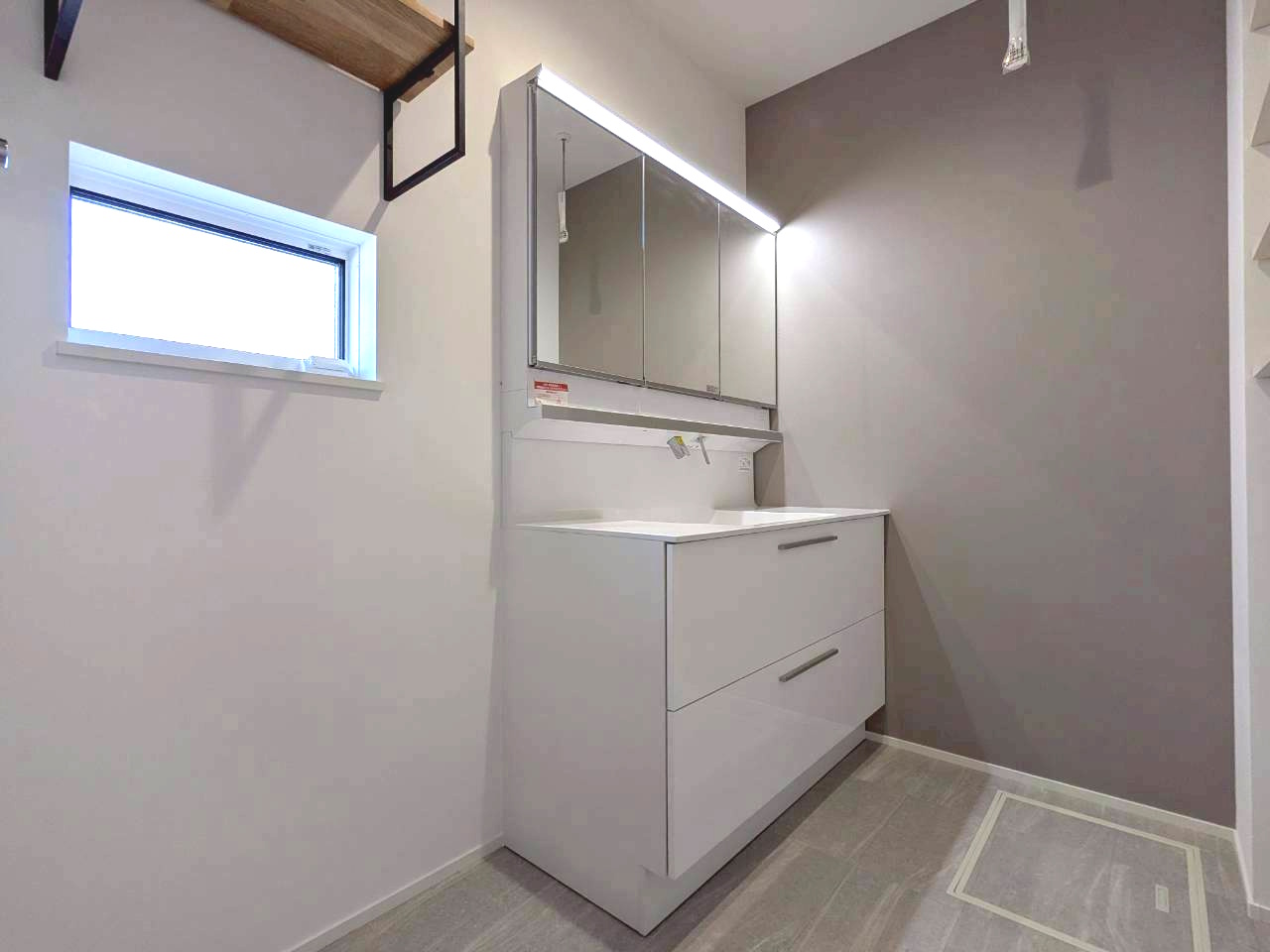 オクターブの化粧鏡は、身だしなみが整えやすい三面鏡タイプを採用。左右の鏡を動かせるため、横顔や細かな部分までしっかり確認でき、毎日の身支度がスムーズに行えます。 鏡裏はすべて収納スペースとなっており、化粧品や洗面小物、電動歯ブラシなどもすっきり整理可能。生活感が出やすい洗面まわりを隠して収納できるため、空間を美しく保てます。 限られた洗面スペースでも、使いやすさと収納力を両立した、うれしい設計です。