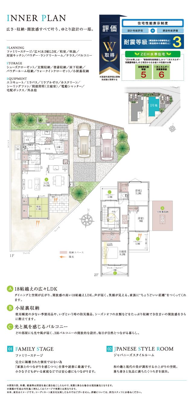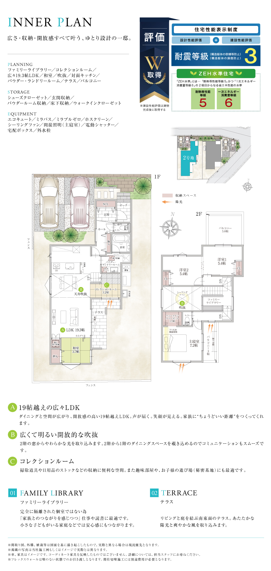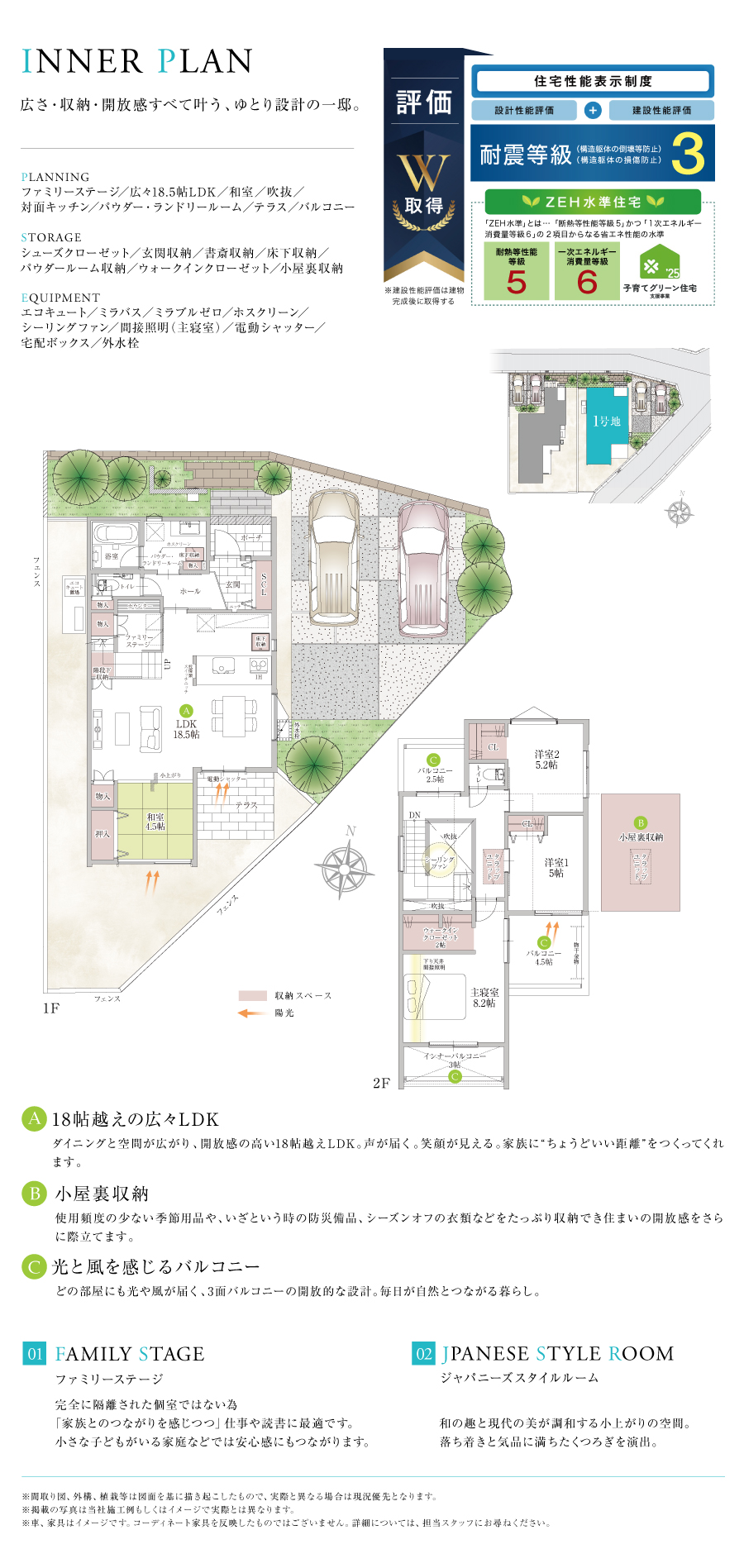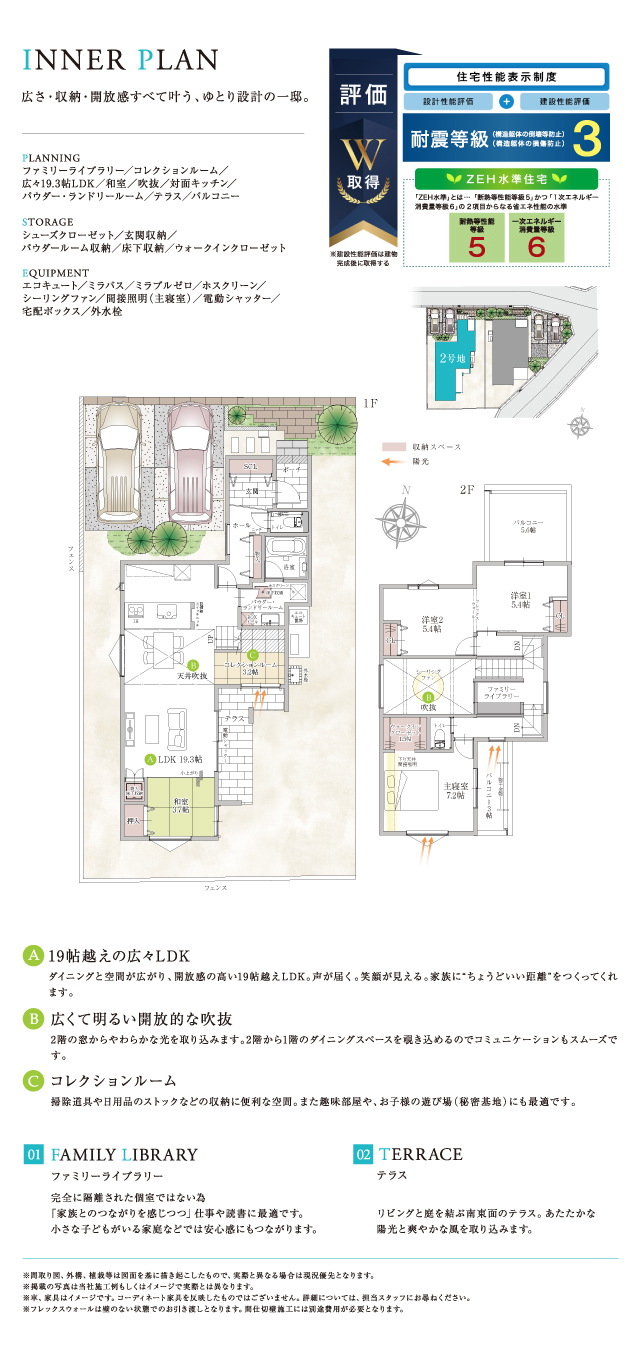 設計性能評価&建設性能評価W取得! 国が定めた住宅性能表示制度において、以下の項目で等級を取得しております。 ・耐震等級3(構造躯体の倒壊等防止) ・耐震等級3(構造躯体の損傷防止) ・一次エネルギー消費量等級6 ・断熱等性能等級5