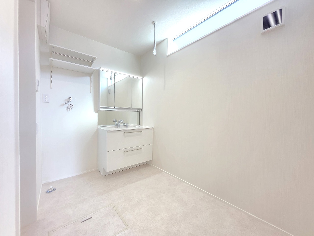 ホスクリーン付きで天候や花粉を気にせず室内干しOK。広々ランドリールームでたっぷり干すことができストレスフリー✨