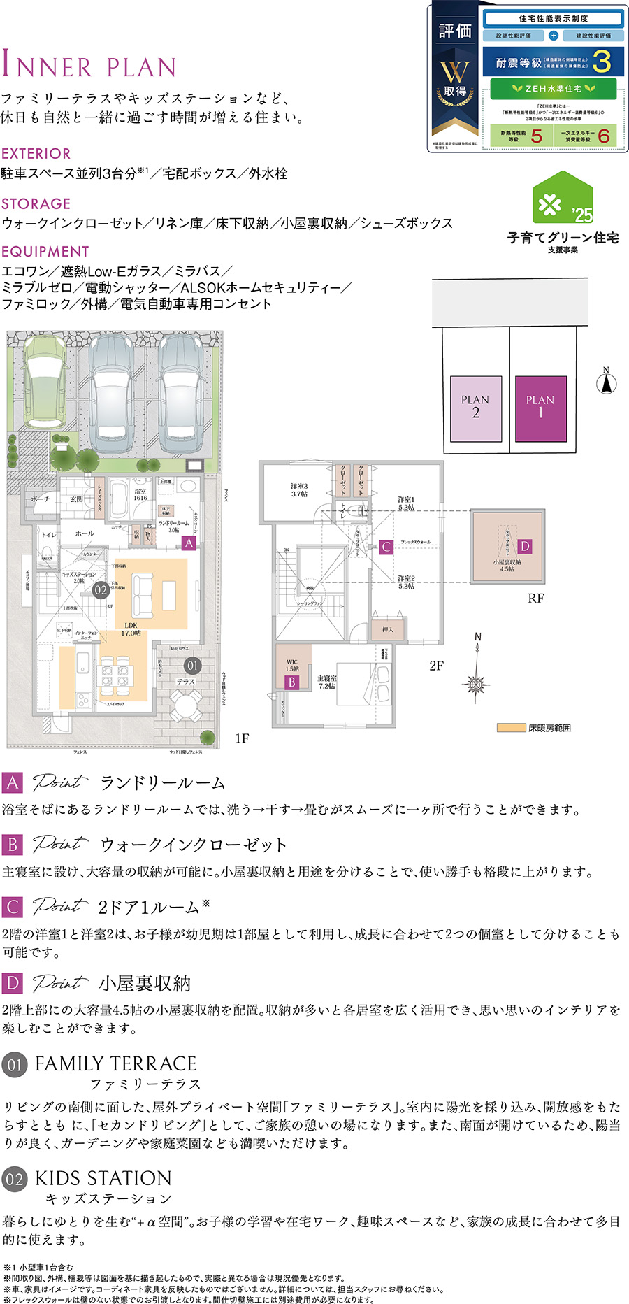 イデアコートでは、今、求められているライフスタイルに合わせて、一棟ずつ、オリジナルの間取りをプランニングしています。