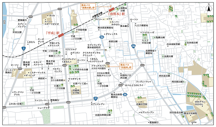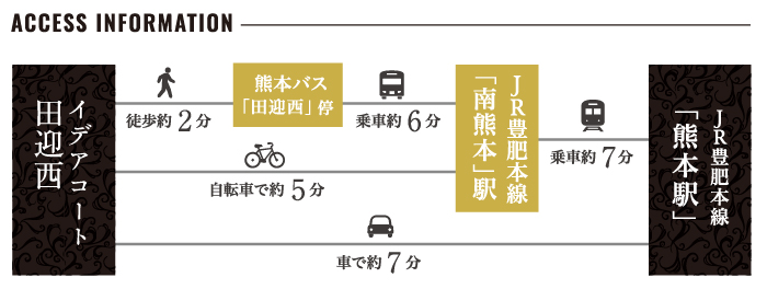 交通 JR豊肥本線「南熊本」駅徒歩約16分、熊本バス「田迎西」停徒歩約2分