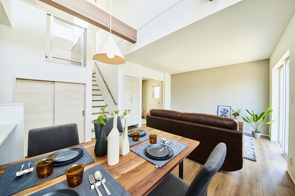 住まいには、開放感をもたらす吹き抜けや、光と風を取り込むテラス、