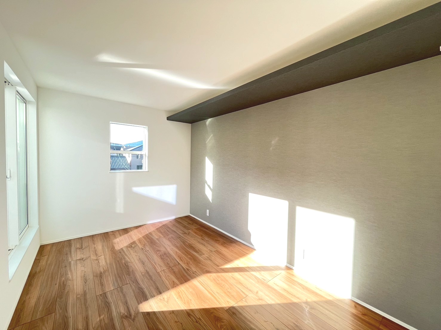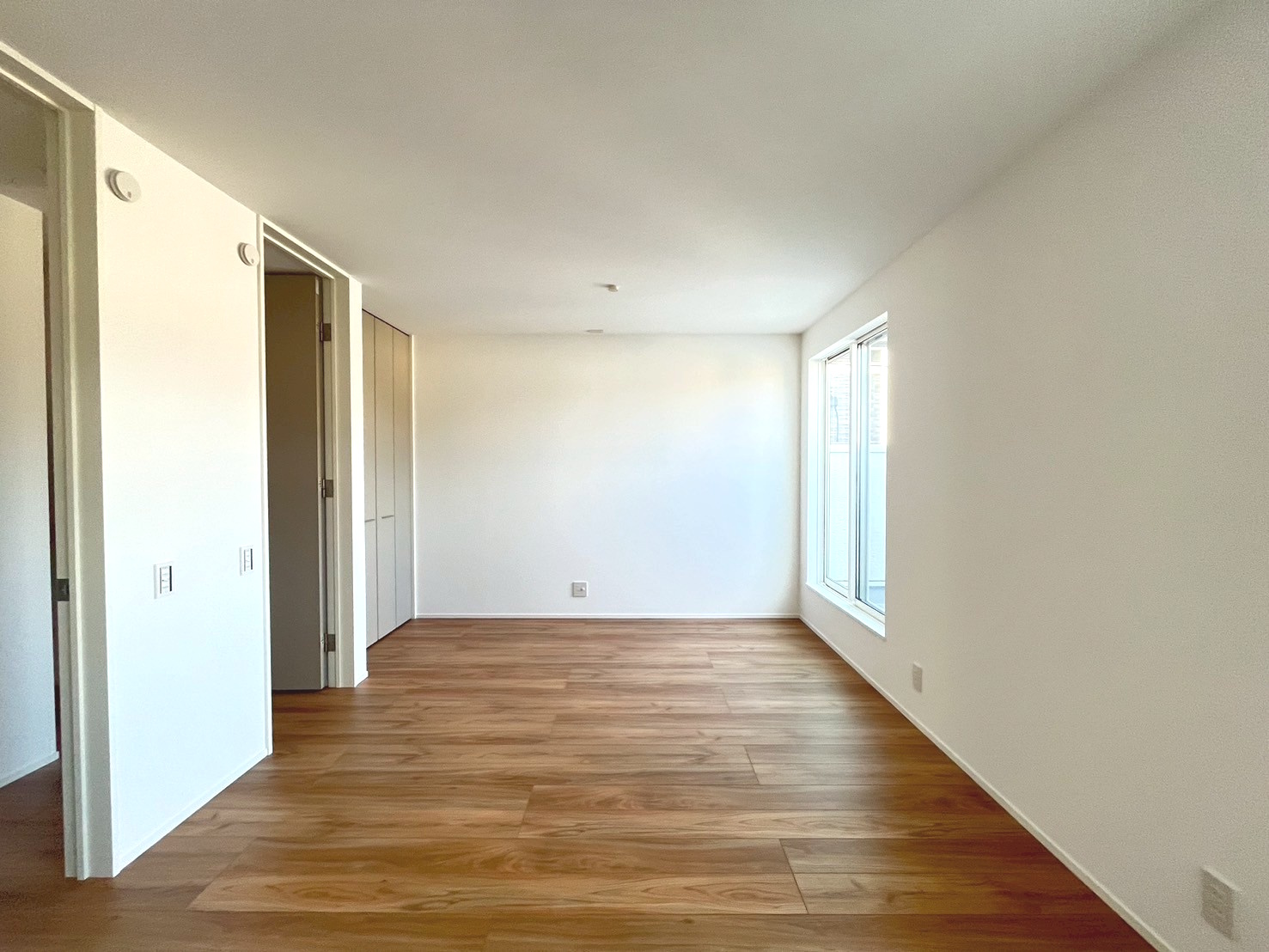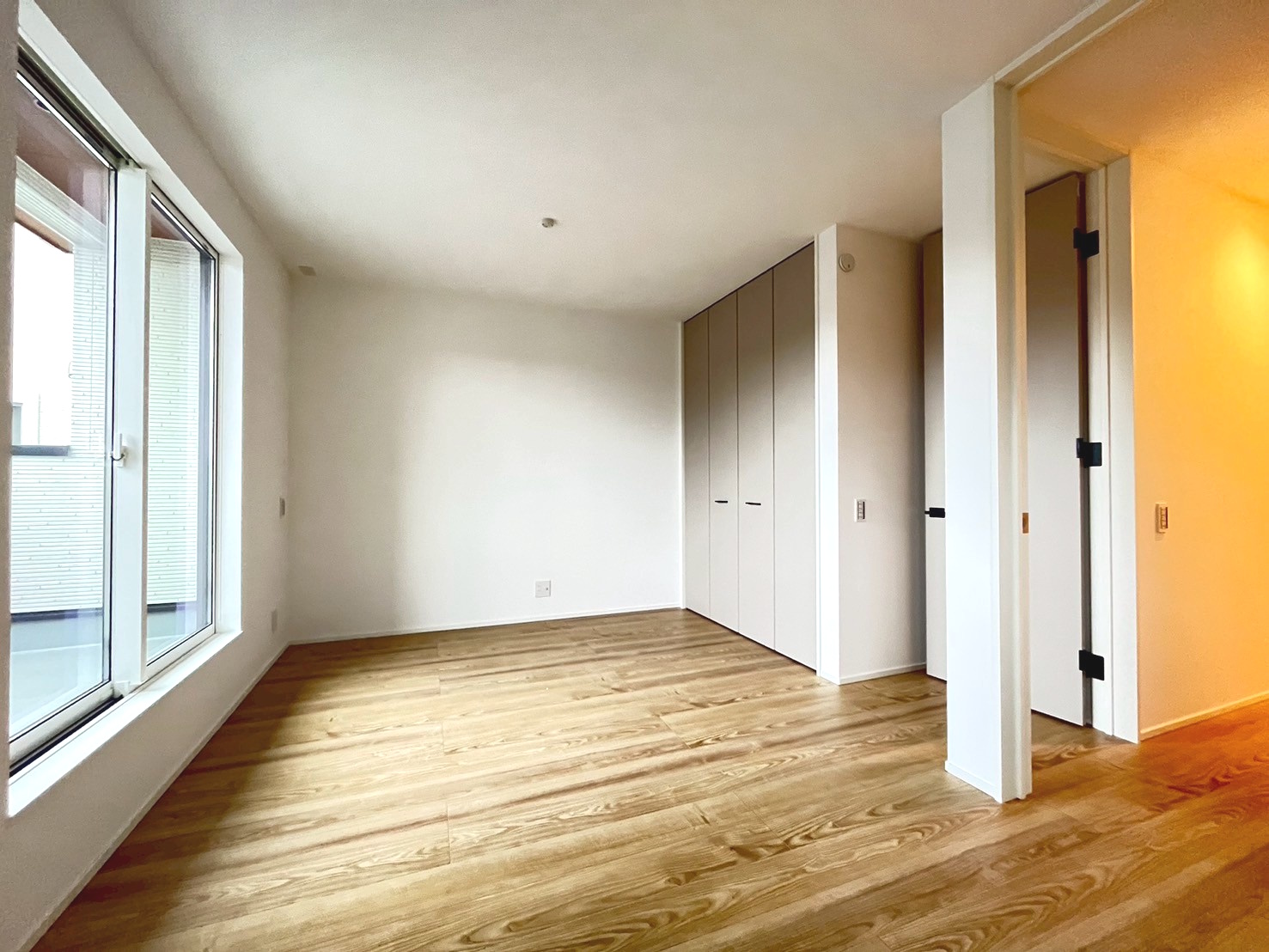 バルコニーに面した明るい主寝室。ウォークインクローゼット付きで収納力も抜群。開放感と落ち着きを兼ね備えた、ご夫婦にぴったりのプライベート空間です。