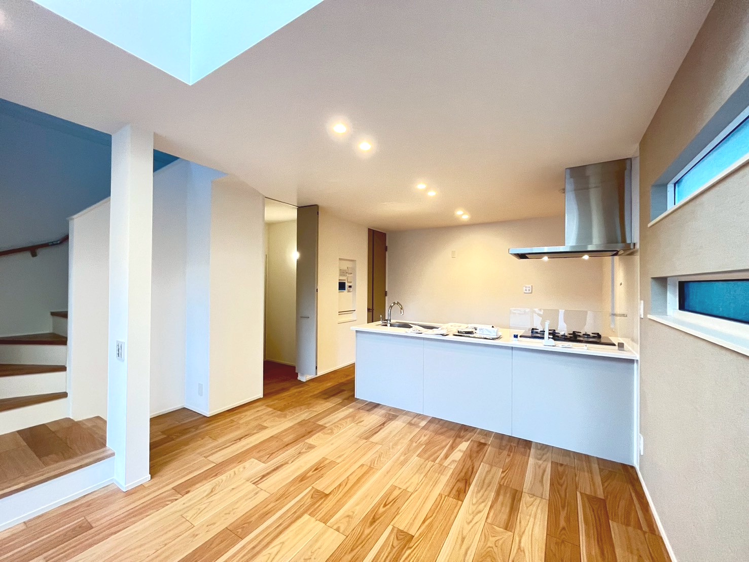 リビングを見渡せる対面キッチンは、家事をしながら家族の様子を確認できる便利な空間。料理中も会話が弾み、子どもや来客との距離も近く、毎日の暮らしに自然なつながりをもたらします。