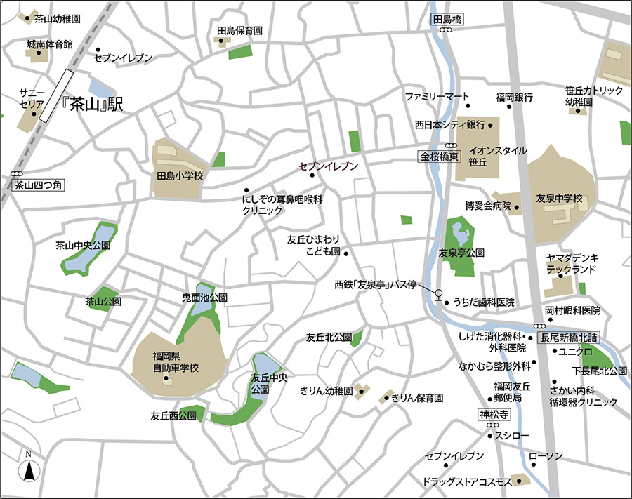 | 交通 | 西鉄バス「友泉亭」停徒歩約3分、地下鉄七隈線「茶山」駅徒歩約16分 |