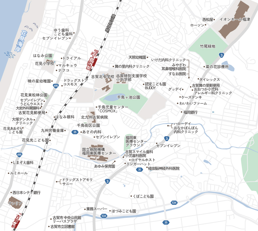 | 交通 | 西鉄バス「花見」停徒歩約1分、JR鹿児島本線「千鳥」駅徒歩約13分 |