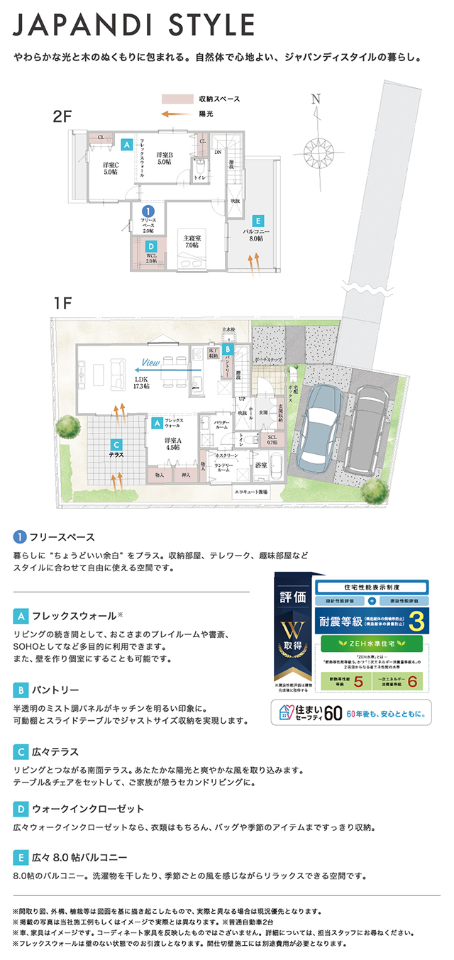 | 備考 | 【1号地】普通自動車2台【2・3号地】普通自動車2台+軽自動車1台※車種・サイズによる |