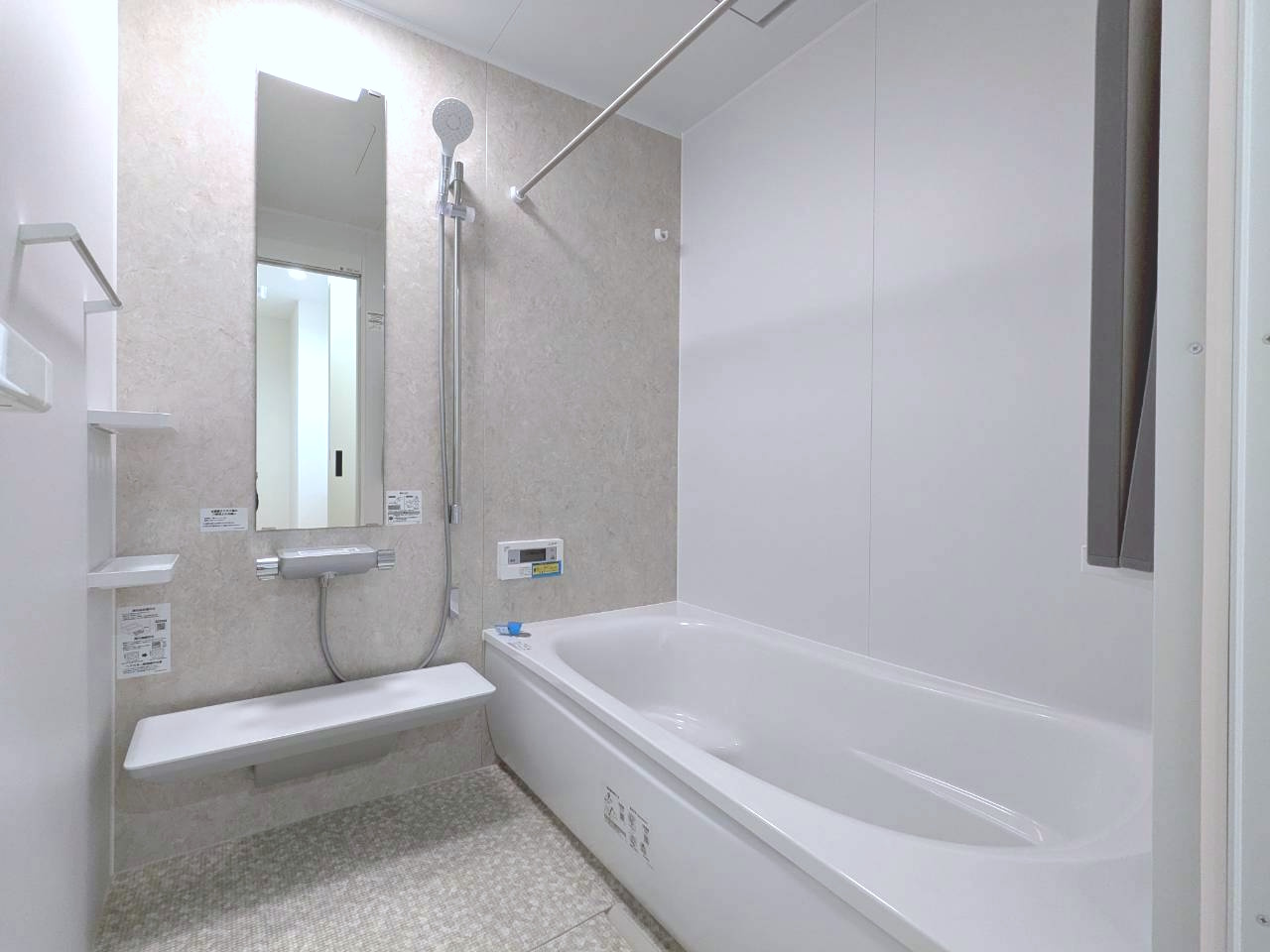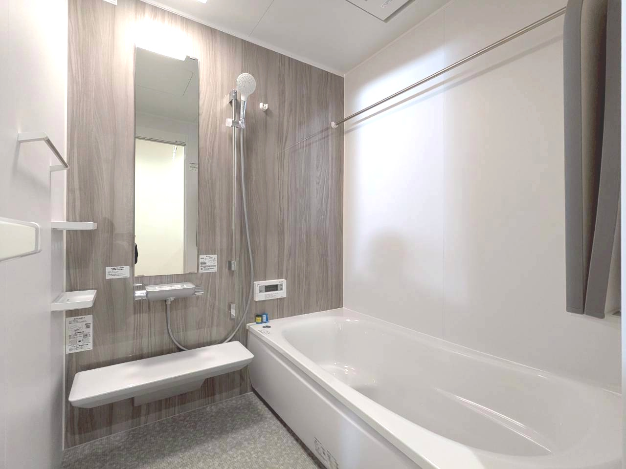 ほっカラリ床と魔法びん浴槽を備えたバスルームは、冬でも冷たさを感じにくく快適。魔法びん浴槽が湯温をしっかりキープし、ゆったりくつろげる癒しの空間を実現しています🛁毎日の入浴タイムが楽しみになる設備です。