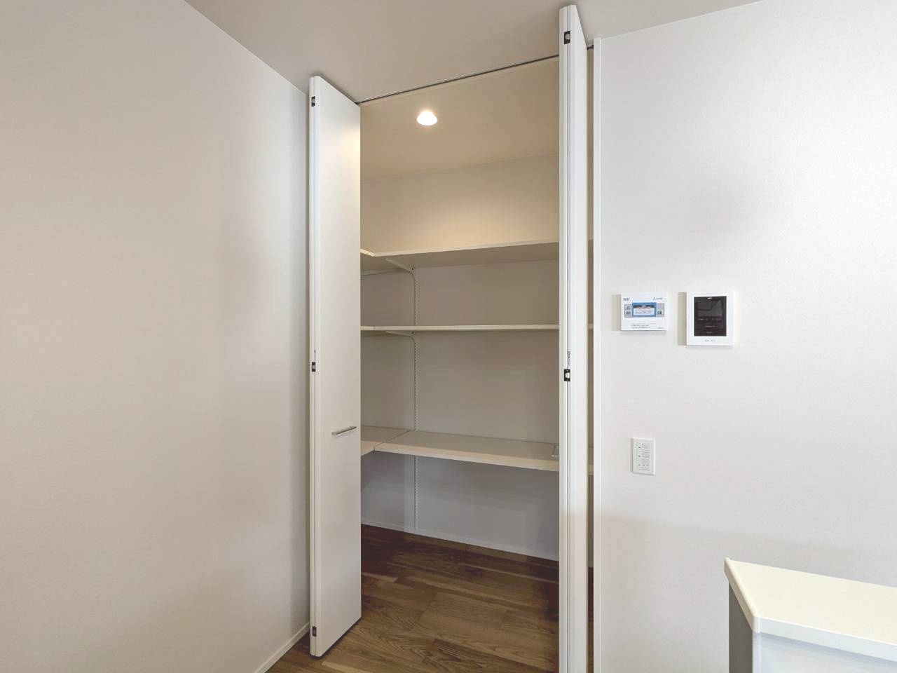 パントリー以外にもキッチン横に大きめの収納スペースを設けました✨食料品のストック保管や防災備品など幅広くアイテム収納に役立ちます!