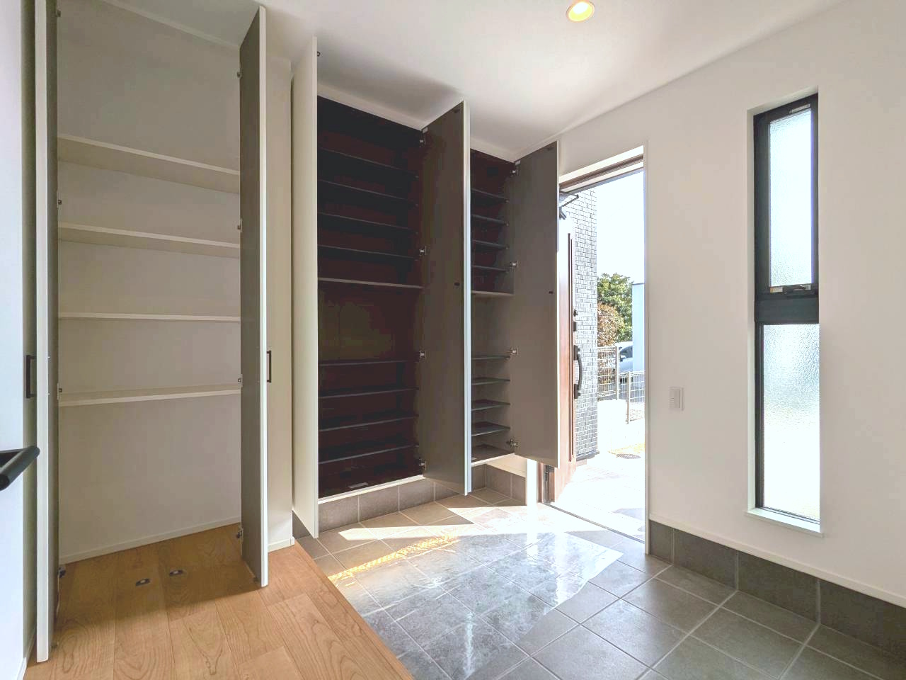 高級感のある広々空間に大容量のシューズボックスを標準設置!家族全員分の靴もキレイに収納できる美しい玄関です👟