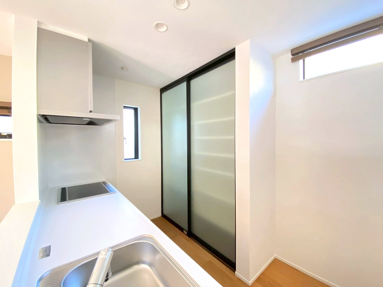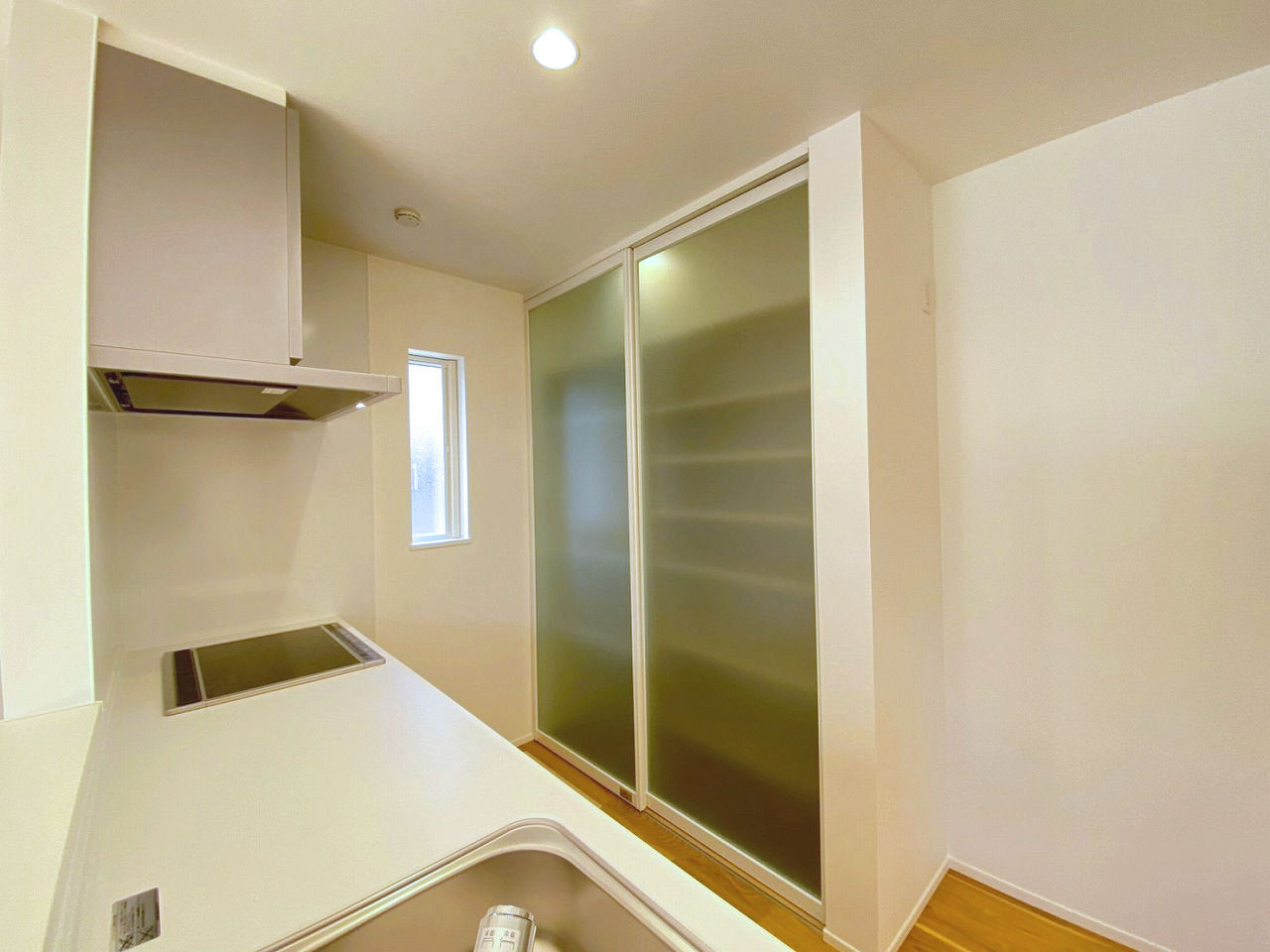 圧迫感をなくし、スッキリ収納できるミスト調パネルを採用✨