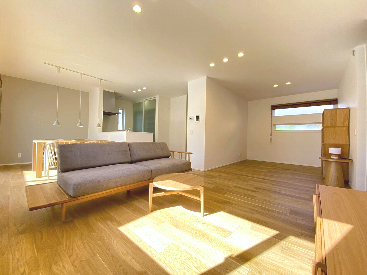 リビングの延長にある洋室は、リビングとつなげて広々使えるほか、壁で仕切り個室にもできる自由設計🌟
