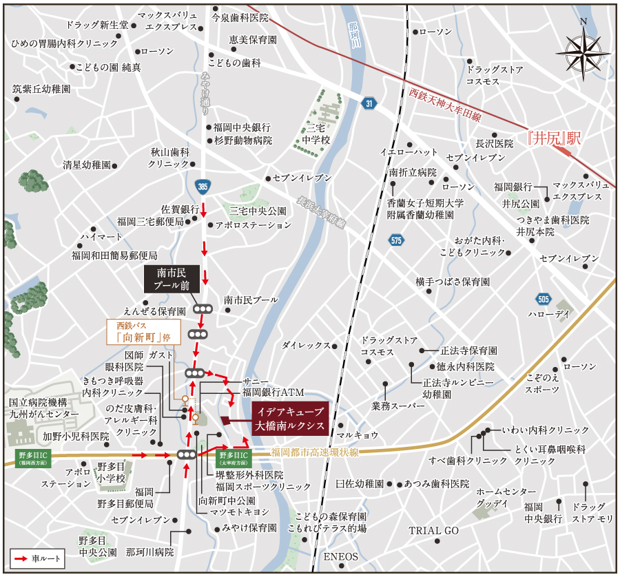 | 交通 | 西鉄天神大牟田線「井尻」駅自転車約8~9分、西鉄バス「向新町」停徒歩約5分 |