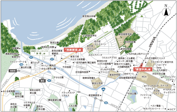 | 交通 | 西鉄貝塚線「西鉄新宮」駅徒歩約12分、新宮町コミュニティバス「湊橋」停徒歩約5分 |
