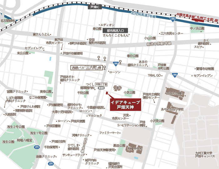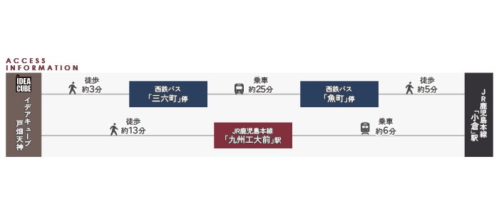 | 交通 | JR鹿児島本線「九州工大前」駅徒歩13分、西鉄バス「三六町」停徒歩約3分 |