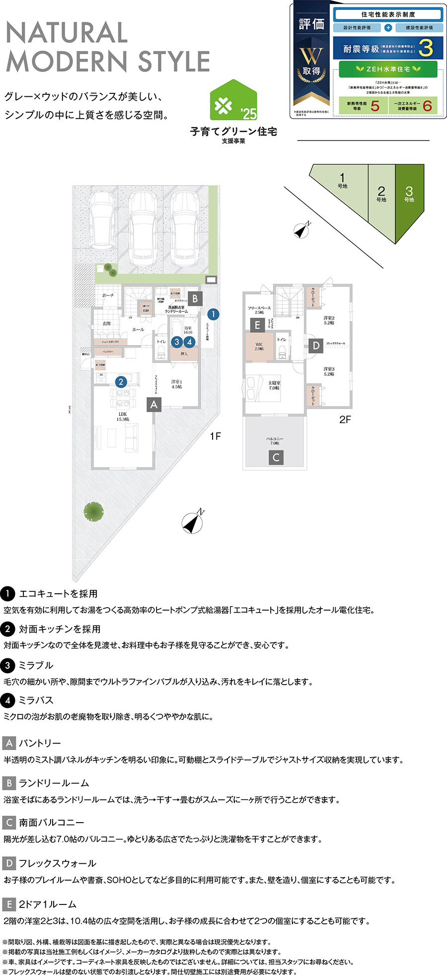 建物構造 木造(在来軸組工法)、ガルバリウム鋼板葺、省令準耐火構造、ZEH水準省エネ住宅