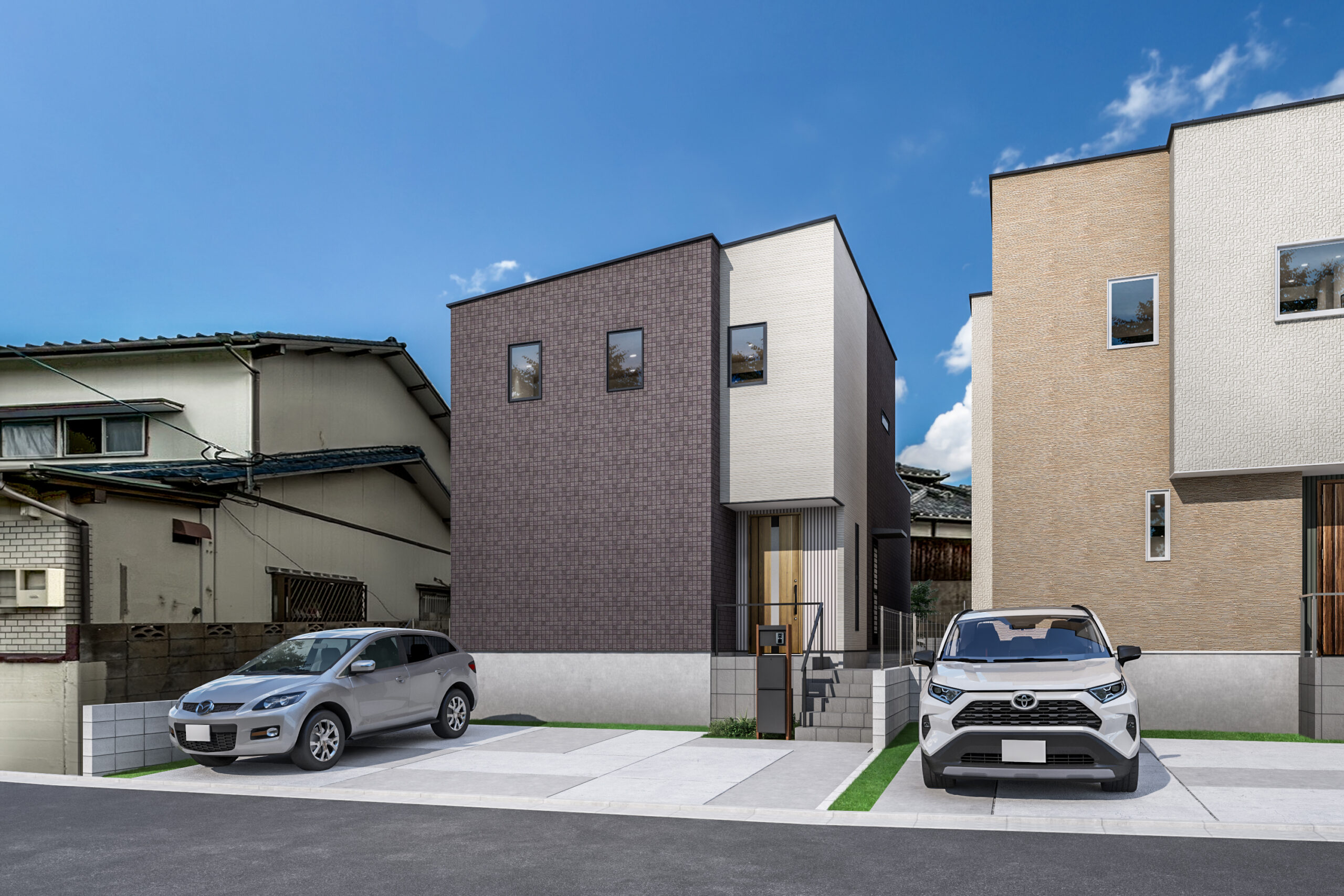 シャープで飽きのこないキューブ型のファザードデザイン(外観)と自由度の高い可変性のあるプランニングが特徴のライフスタイル提案型家具付き戸建分譲住宅[iDEA CUBE〈イデアキューブ〉]。