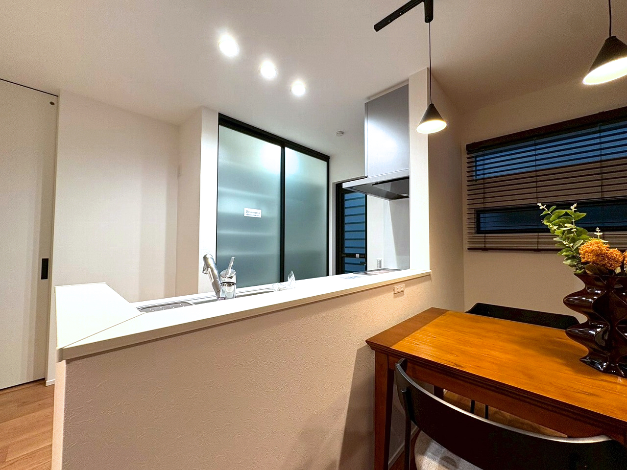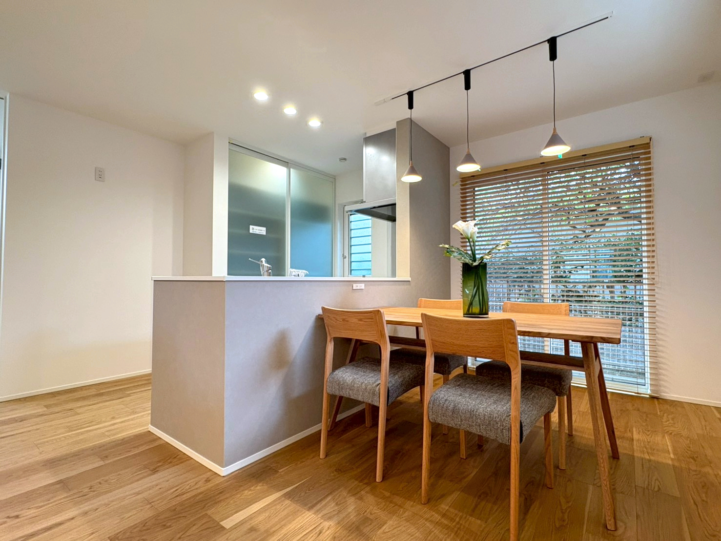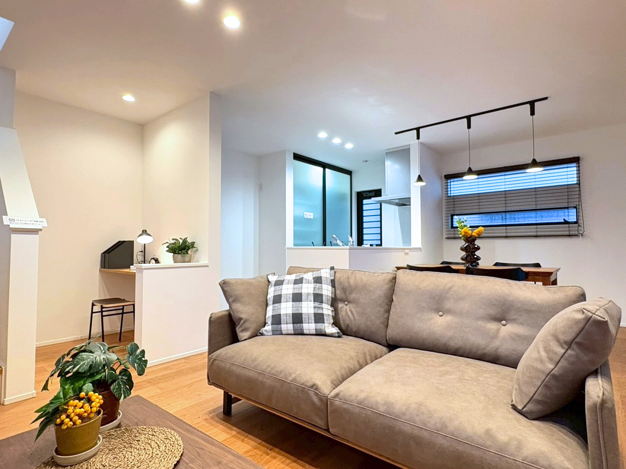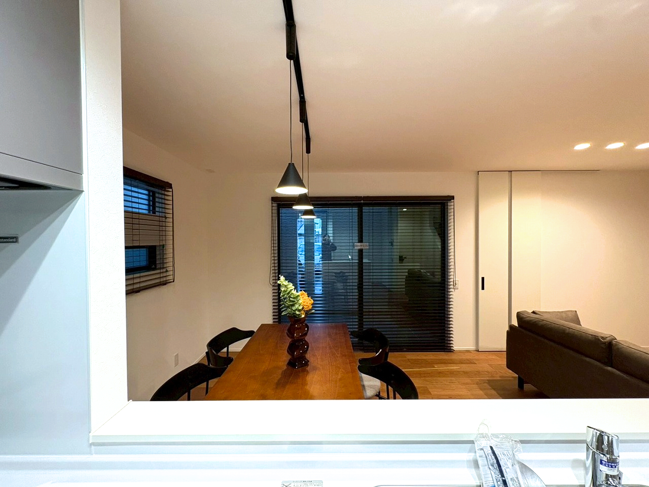 リビングには調光可能なダウンライトを、ダイニングにはお洒落な間接照明を設置し、夜も明るく家族の時間を包み込みます🌙