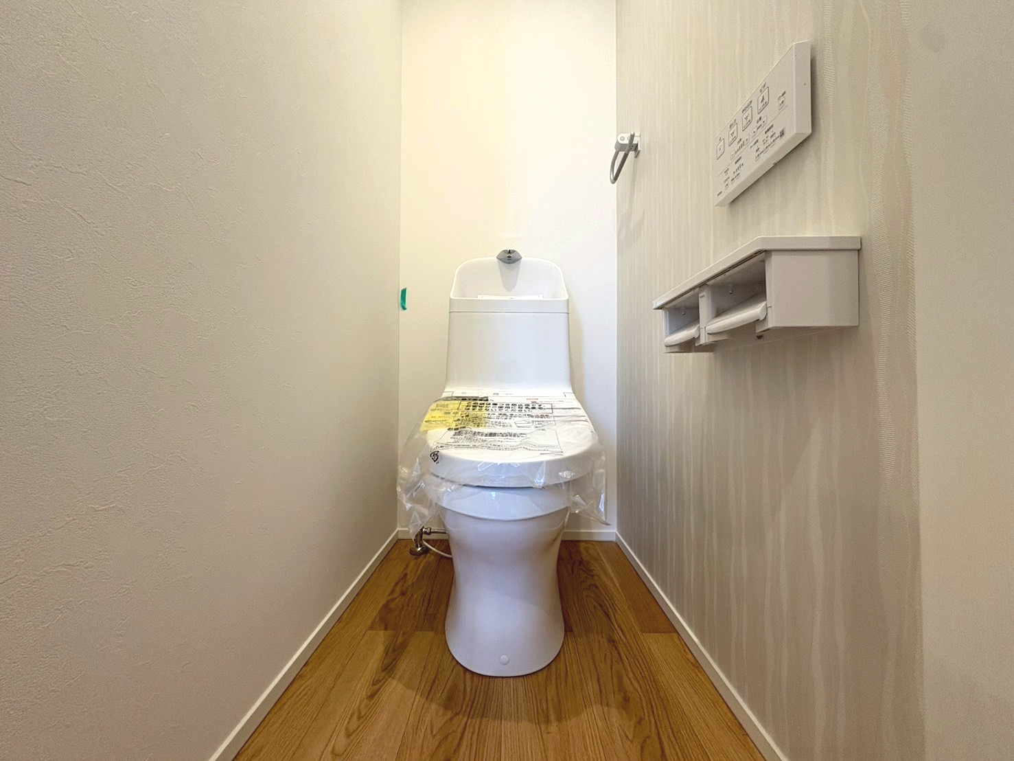 すき間や段差を抑えた清潔感あるデザイン。足元がスリムで広々使え、手洗い器は大人も子供も使いやすい高さに設計されています🫧