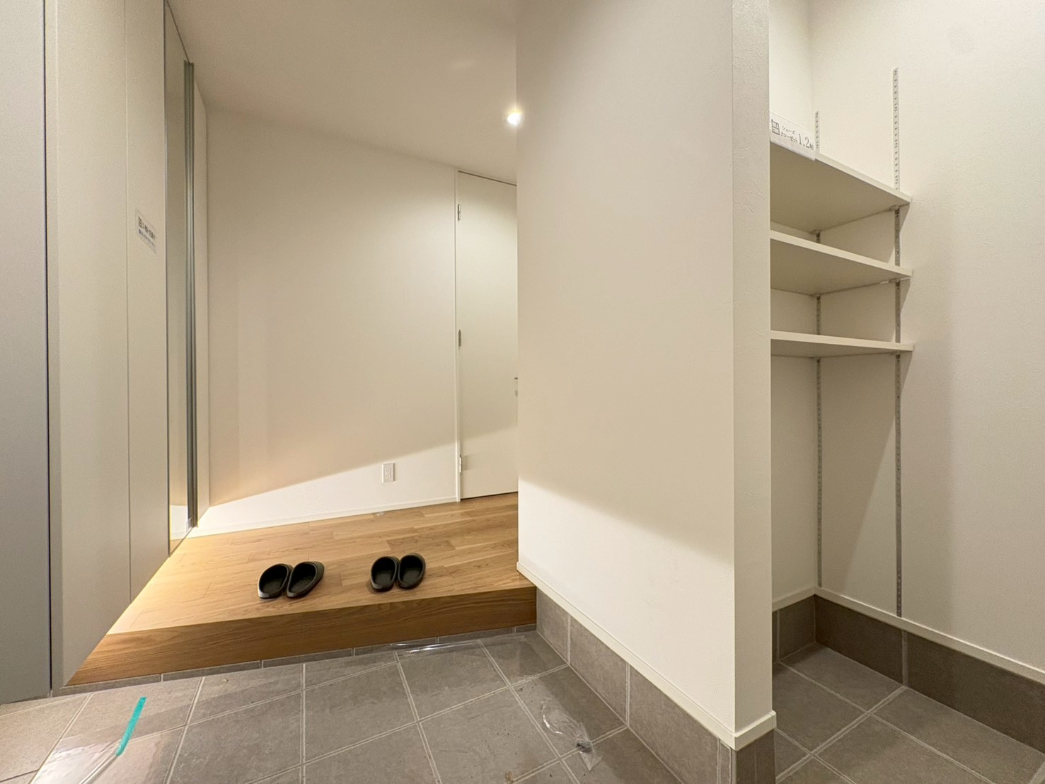ベビーカーやゴルフ用品もスッキリ収まるシューズインクローゼット✨忙しい朝の支度が、ちょっと楽になる便利なスペースです。
