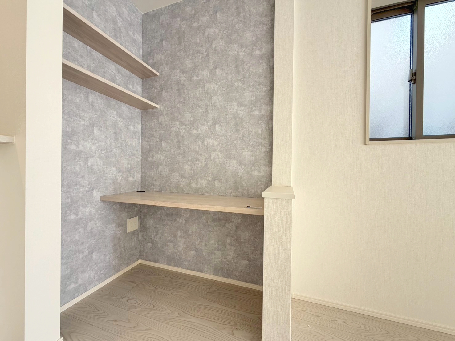 ワークスペースや見せる収納にも最適なスペースを設置しました◎ 壁を隔てないことで、ご家族の存在感を感じながらそれぞれの時間をお過ごしいただけます🌈