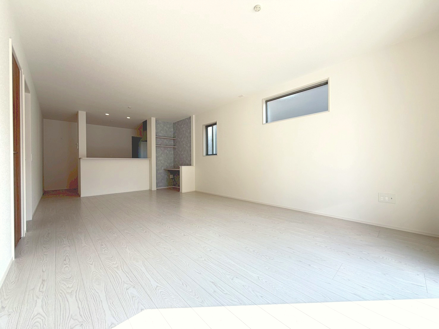 広々19帖のリビング🛋️ ご家族ゆったりお過ごしいただけます。採光+明るめのフローリングで、開放的な空間を演出しています♪