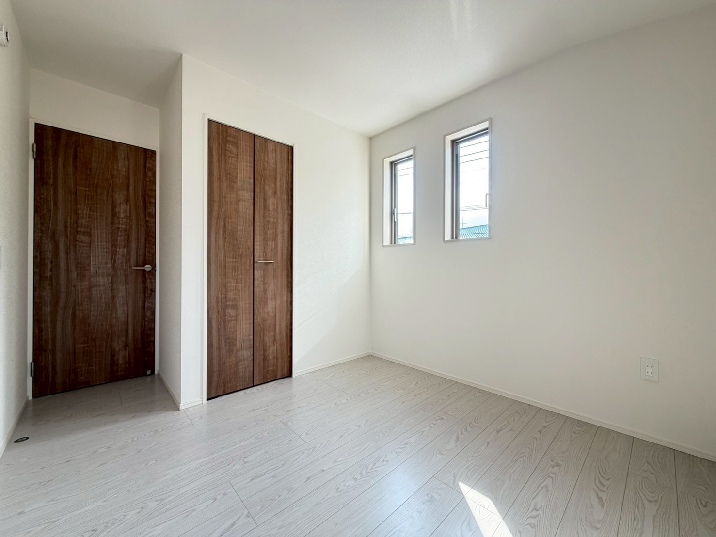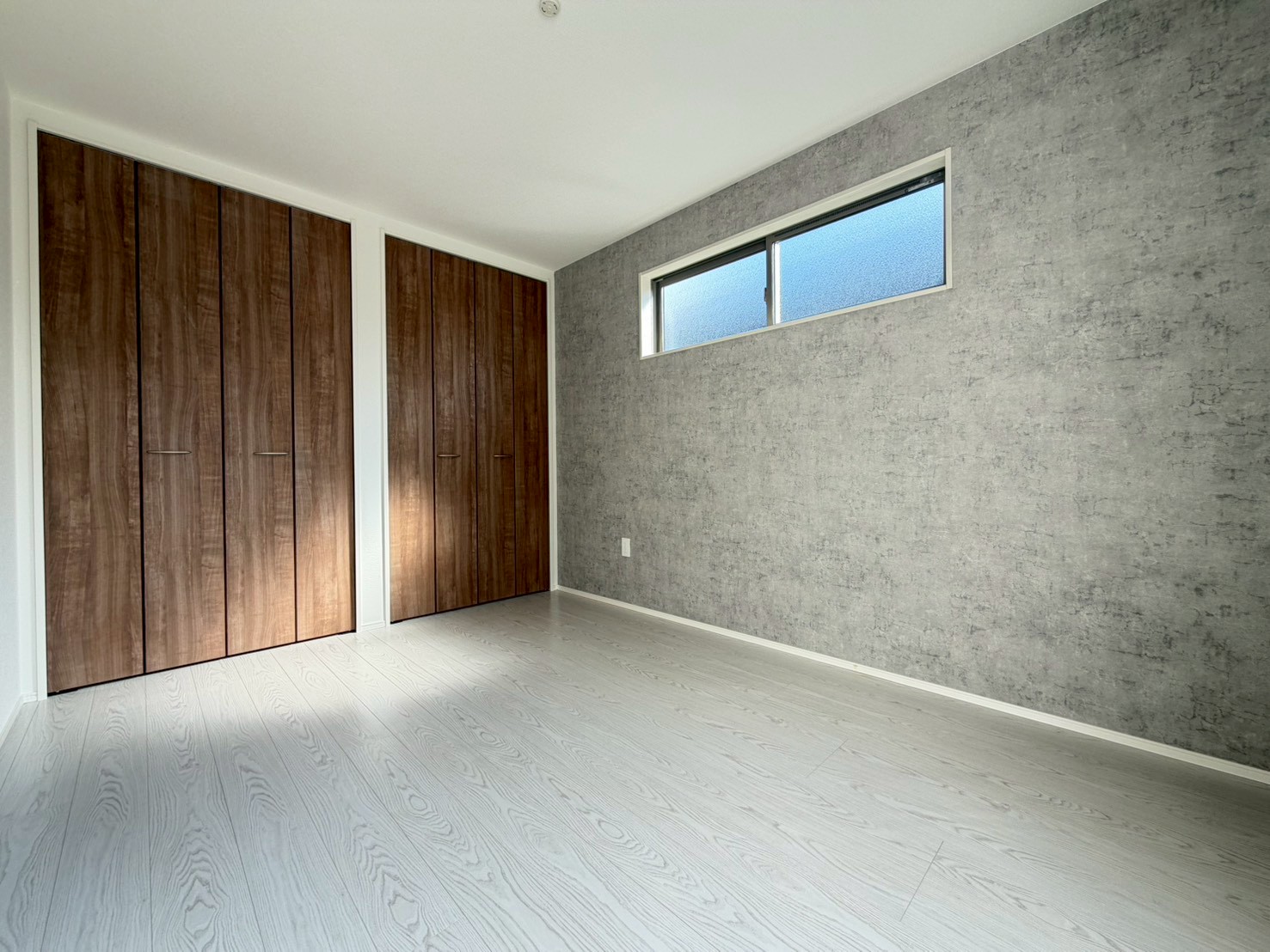 収納が二つあり、ご家族分の荷物をしっかり収納いただける洋室。バルコニーから差し込む陽光が、お部屋全体を明るく包み込んでくれます🌞