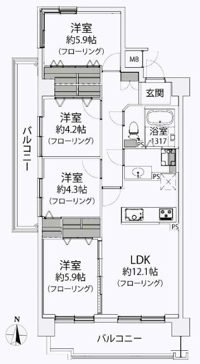 ・面・西面バルコニー角部屋住戸✨風通し・陽当たり良好🌞