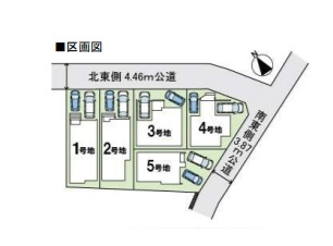 道路幅員 北東側約4.46m、南東側約3.87m公道