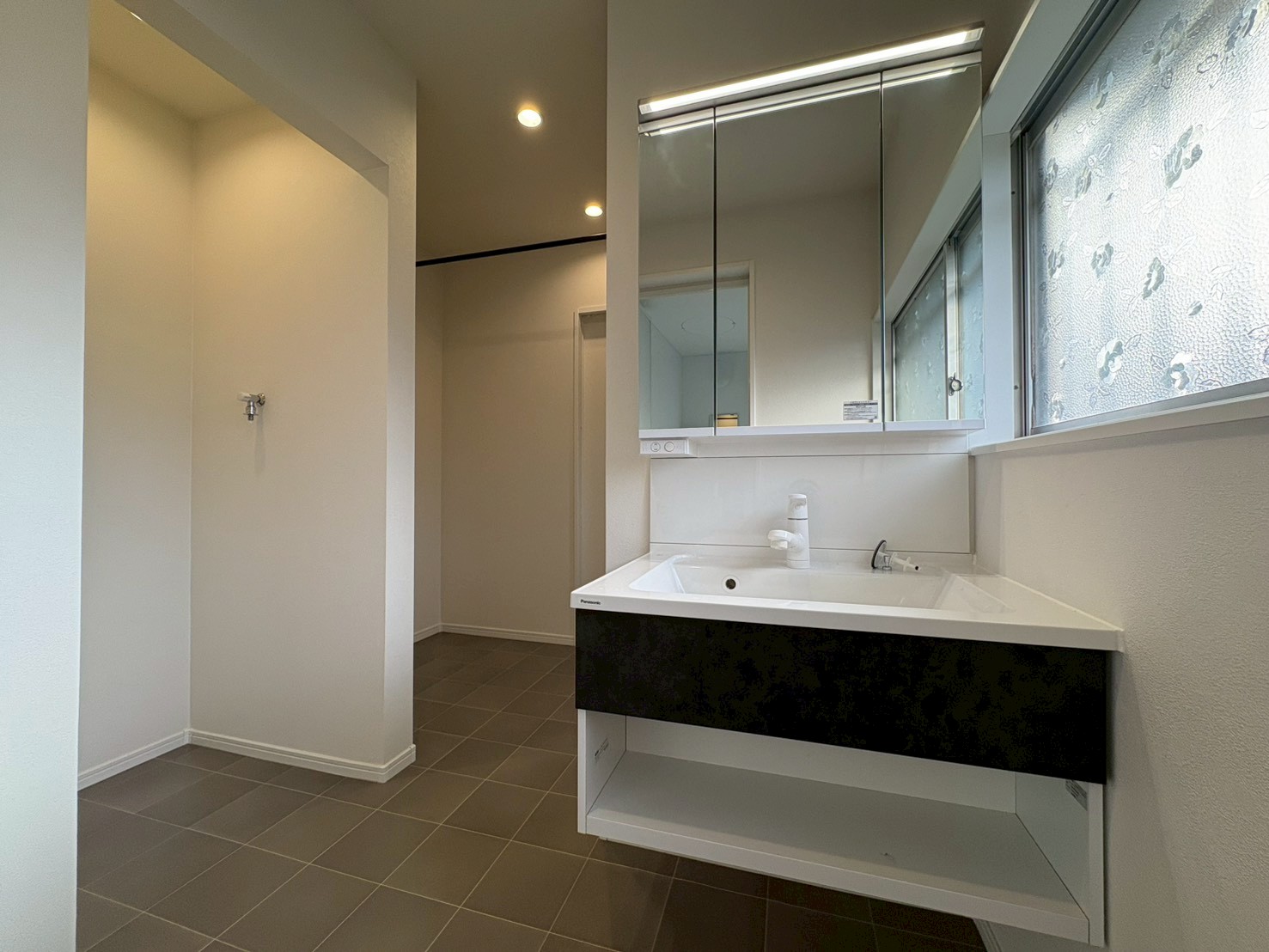 三面鏡付洗面台は、鏡裏収納でスッキリ収納可能です✨
