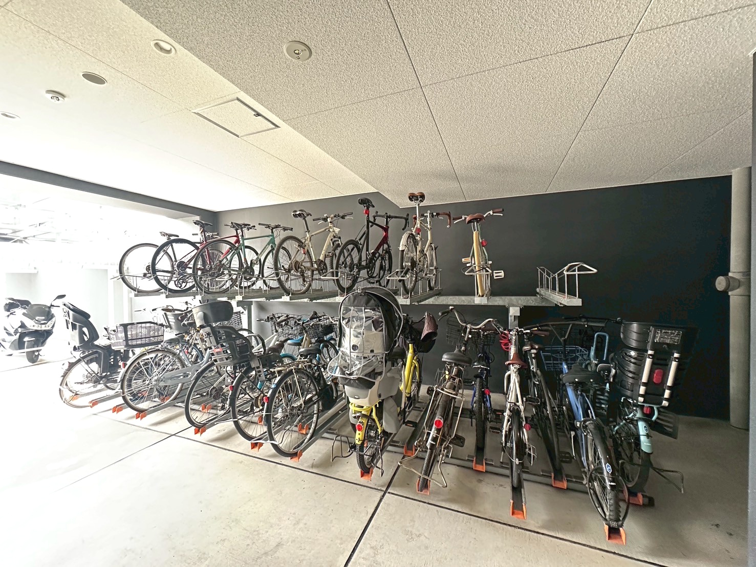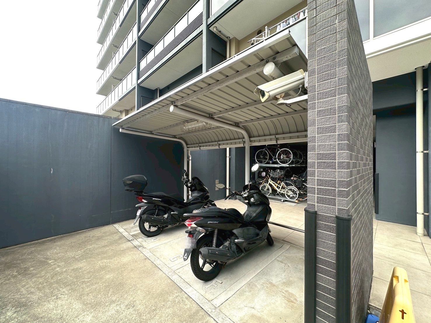 しっかりと確保されたスペースで大切なバイクを安心して駐輪できます🏍日常の移動手段として快適に利用できる共用部。