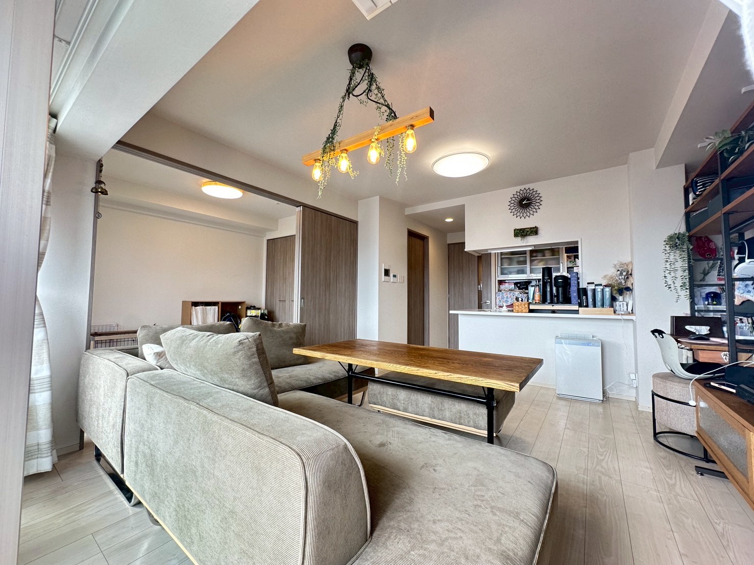 リビングに隣接した洋室は、引き戸の開閉で一体利用も可能🙆🏻‍♀️来客時の客間やお子様の遊び場、在宅ワークスペースなど多用途に活躍し、暮らしに合わせて柔軟に使える便利な空間です🌈