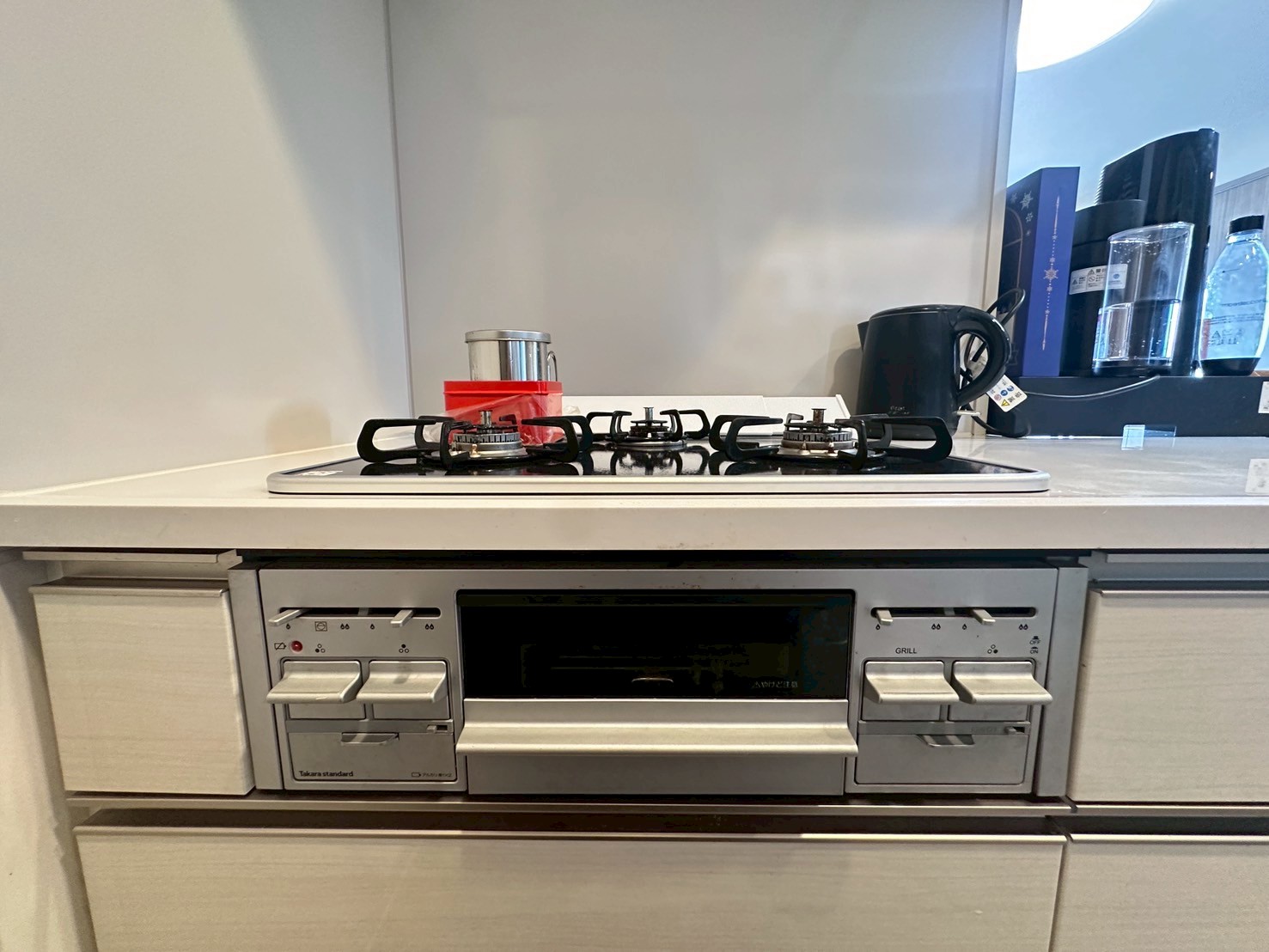 艶があって美しく、汚れが落ちやすくお手入れしやすいグリル付きの3口ガスコンロです。