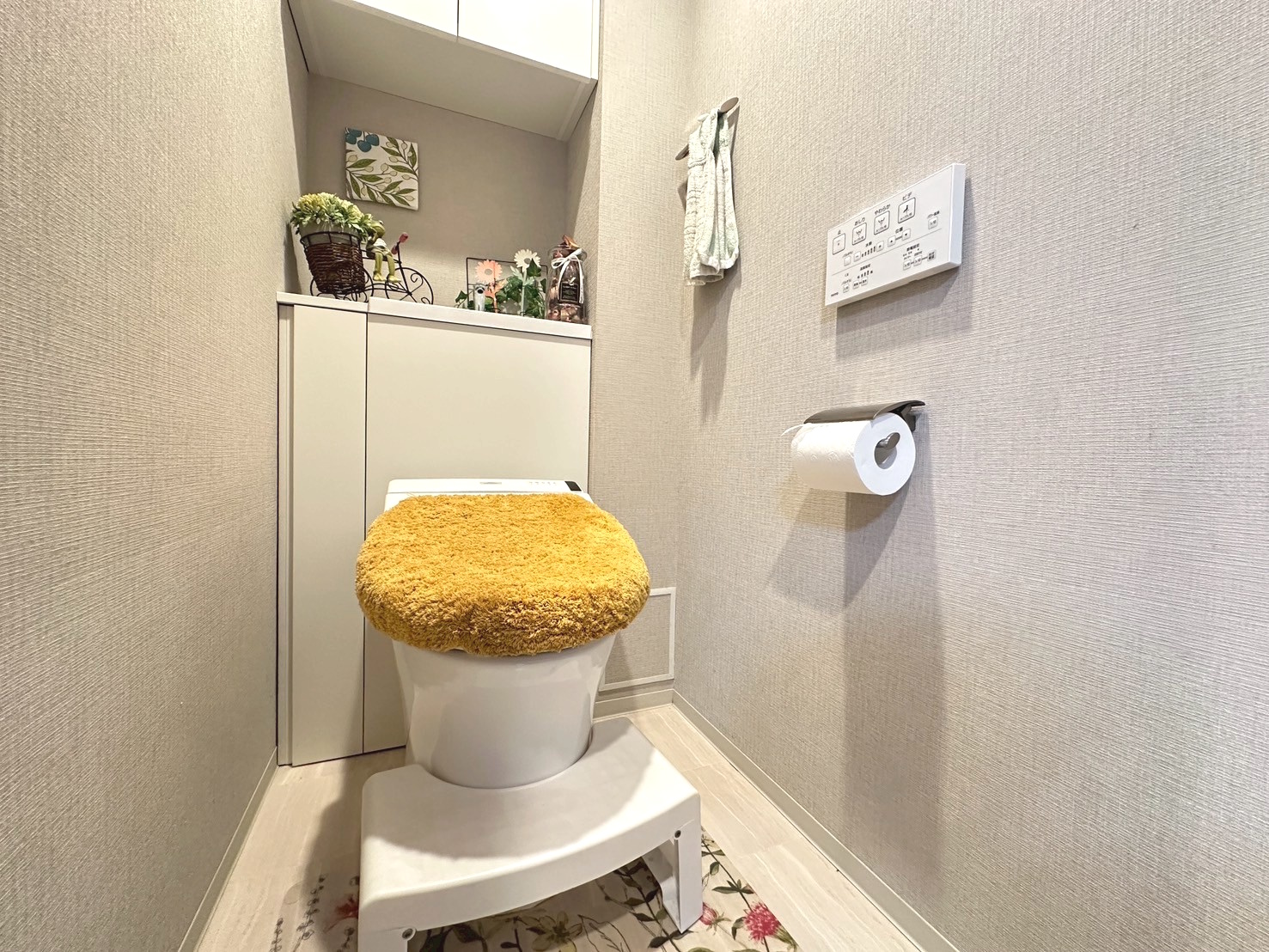 キャビネット付きでトイレットペーパーや掃除用品もすっきり収納可能✨便器にはセフィオンテクト加工を採用し、汚れが付きにくくお手入れも簡単🙆🏻‍♀️清潔で快適に使える機能的なトイレです🚽