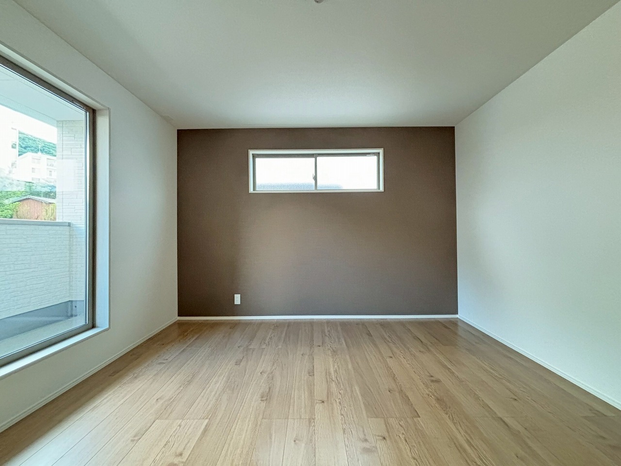 8帖の広々主寝室は、アクセントクロスがお洒落でリラックスできる空間を演出します✨