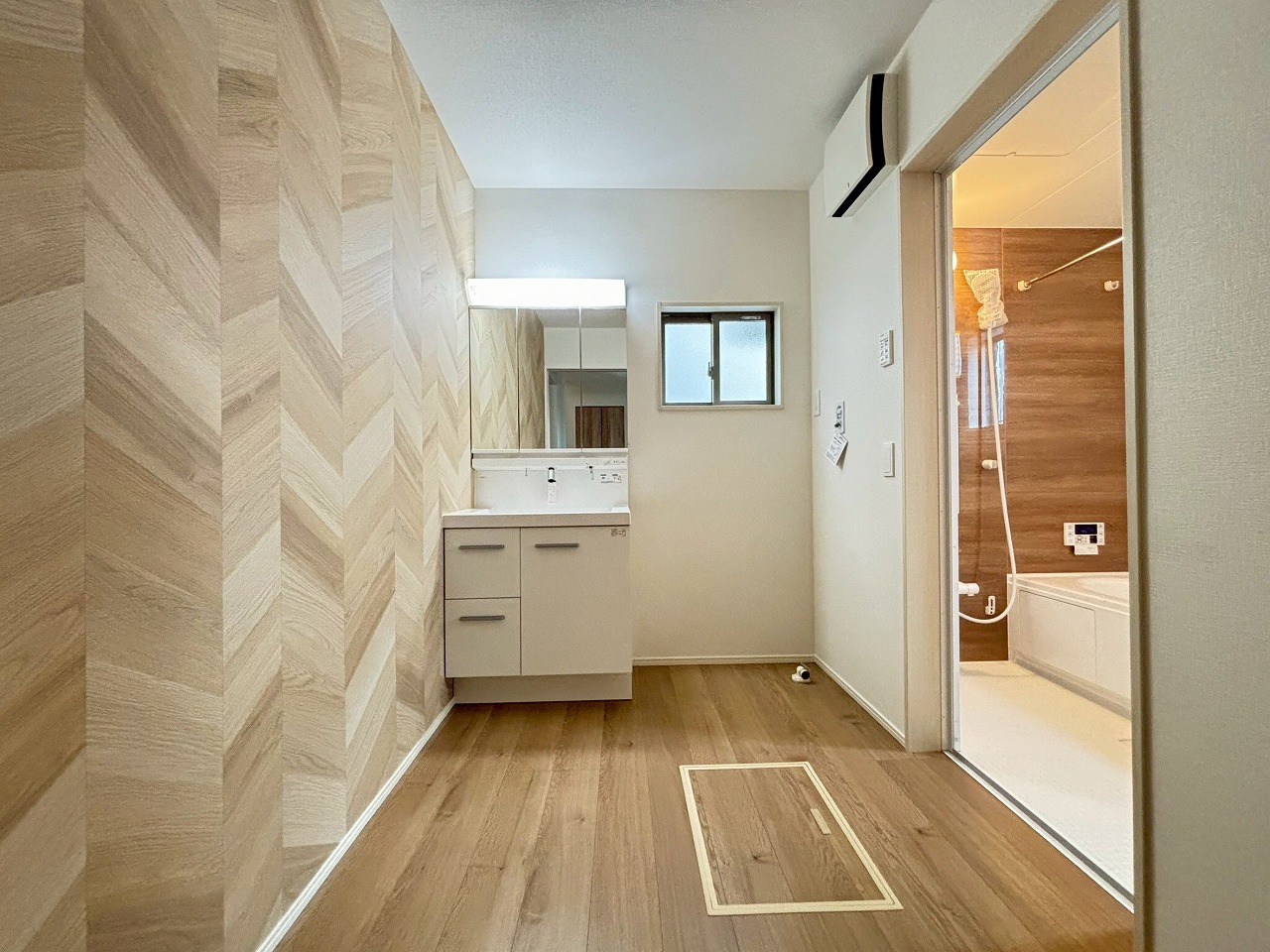 広々とした空間で、お子様と一緒に入浴する際も安心です✨アクセントクロスで清潔感UP!