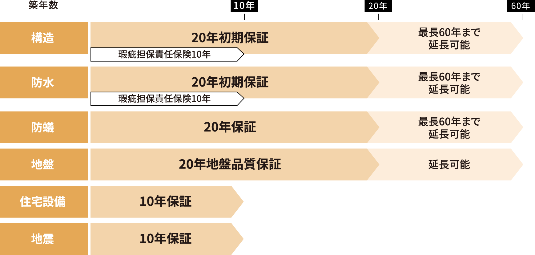 お引き渡し後は20年の初期保証、最長60年まで続く