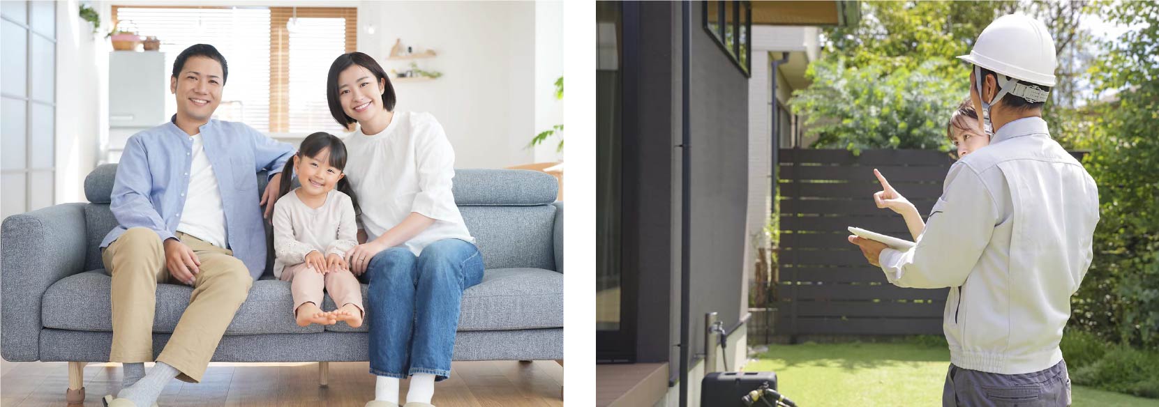 確かな住宅性能と定期的な点検・メンテナンスにより初期保証20年をご提供します。建物品質保証では構造耐力上主要な部分や雨水の浸入を防止する部分の品質を保証します。万が一、構造的な欠陥があった際には、現状回復工事を実施いたします。